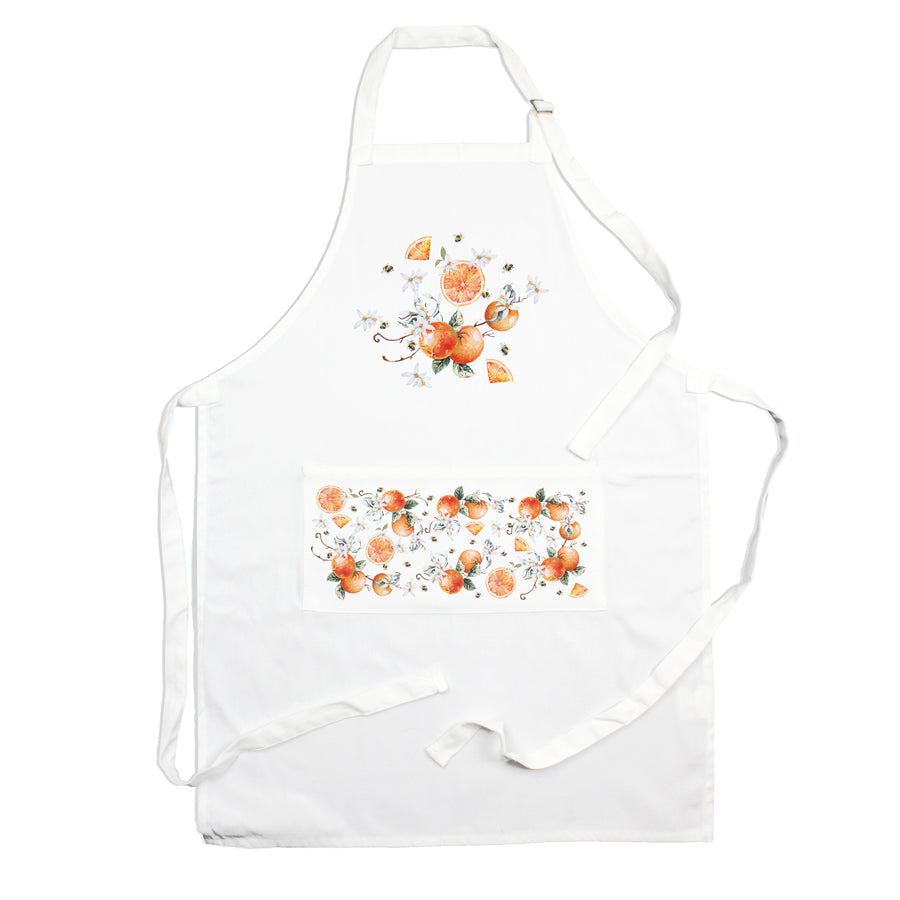 Add a delightful pop of citrus colour to your kitchen with this lovely tangerine print apron! With a comfortable & adjustable fit, this apron is sure to protect your clothing from spills and splatters when cooking and baking. Perfect as a gift or for everyday use!