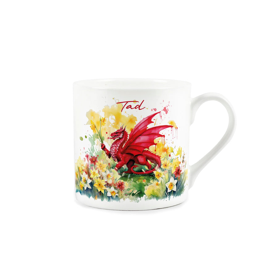 Displaying the national flower and the patriotic red dragon of Wales, this stunning bone china mug explodes with colour! The large mug features the recognisable dragon surrounded by splashes of yellow, red and green, with a bed of daffodils blooming beneath - ideal for enjoying a cuppa partnered with a traditional Welsh cake.