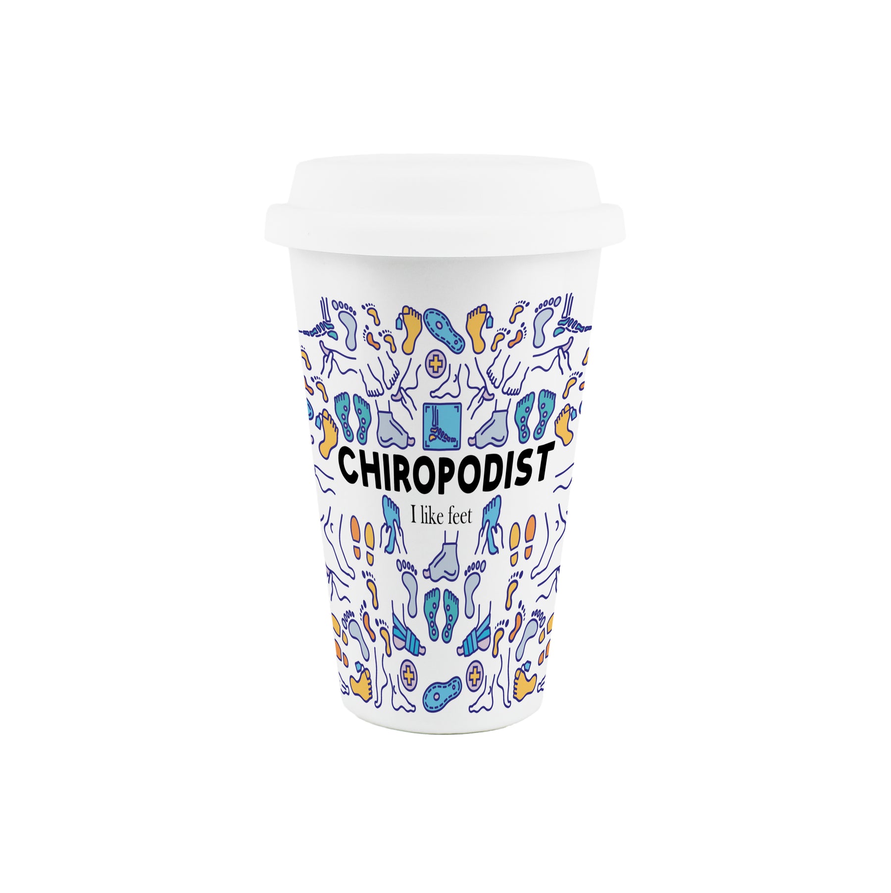 This foot-themed ceramic travel mug is a perfect gift for any chiropodist you know. Featuring a print filled with feet (much like the day of a chiropodist) and the types of treatment they can require, partnered with text quoting "Chiropodist - I like feet" on the front, this will be sure to be their mug of choice when they get the moment for a tea break between clients!