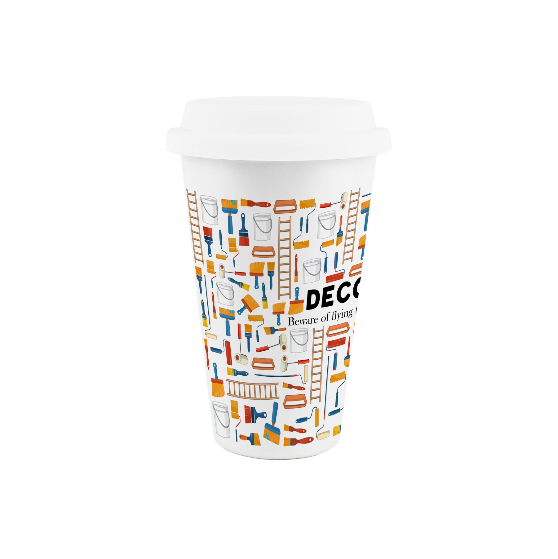 This humorous ceramic travel mug is a perfect gift for any decorator in your life. Featuring a print filled with tools used during the day-to-day life of a decorator around the mug, partnered with text quoting "Decorator - Beware of flying tools & obscene language" on the front, this will be sure to give them a chuckle during their tea breaks!
