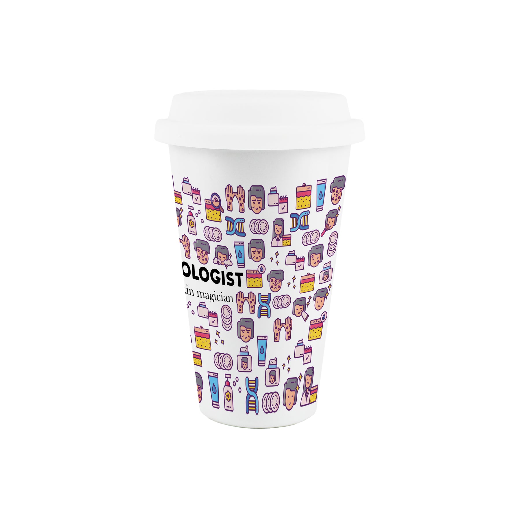 This illustrated white ceramic travel mug is a perfect gift for any dermatologist you know. Featuring a skin care themed print, along with text quoting "Dermatologist - AKA The skin magician" on the front, this is sure to be their mug of choice when they get the moment for a tea break between patients!