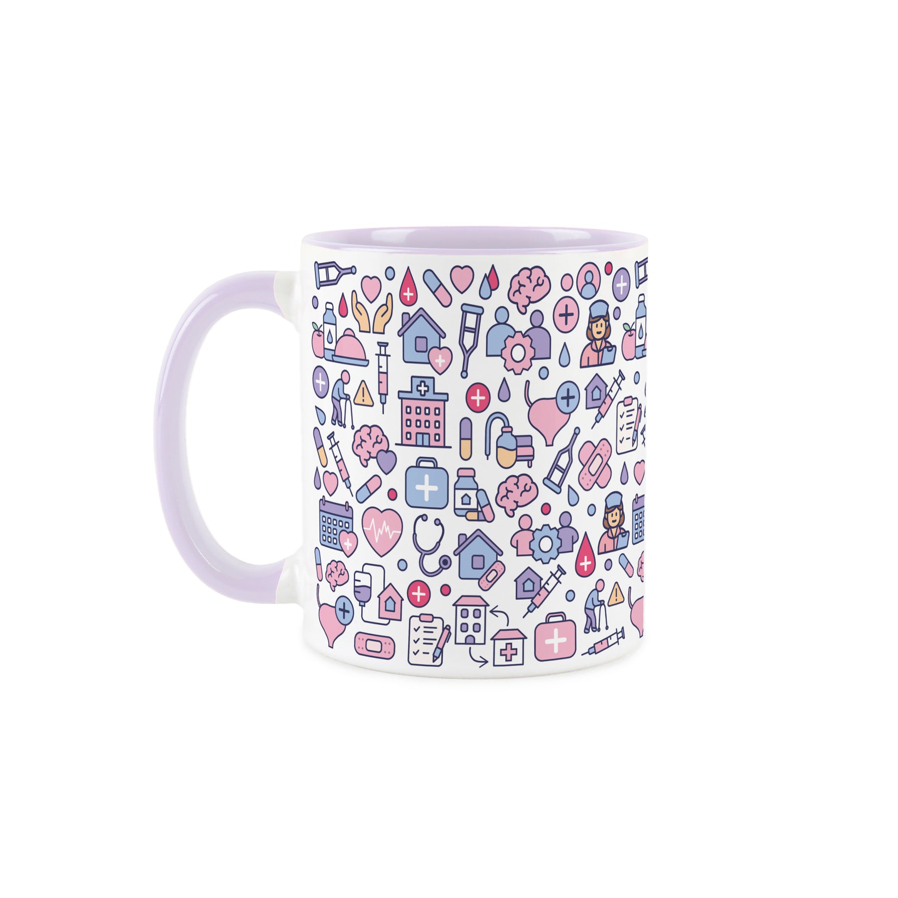 This medical themed lilac ceramic mug is a perfect gift for any district nurse in your life. Featuring a print filled with crutches, medications, first aid kits and more around the mug, partnered with comical text quoting "District Nurse - Injecting humour daily!" on the front, this will be sure to make them chuckle when catching a break between patients!