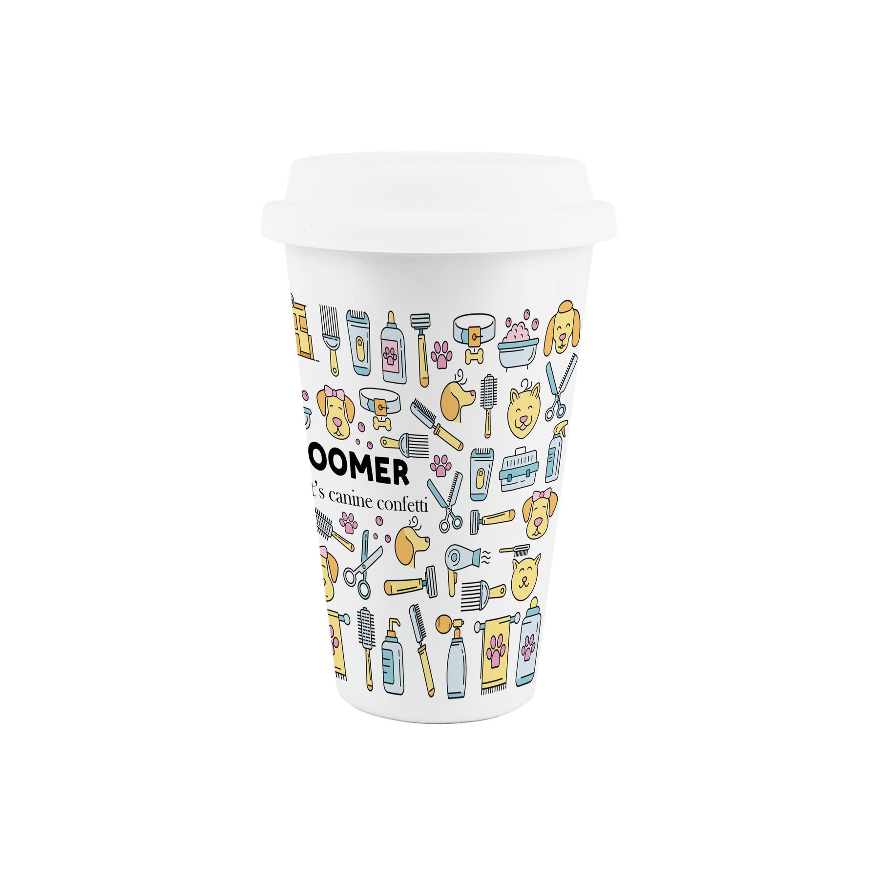This dog groomer-themed ceramic travel mug is a perfect gift for any dog groomer or pet pamperer you know. Featuring a print filled with all the things you'd expect to find in a grooming salon, from scissors and shampoos, to clippers and dryers, along with text quoting "Dog Groomer - It's not dog hair, it's canine confetti" on the front, this will be sure to make their hot drinks taste even better!