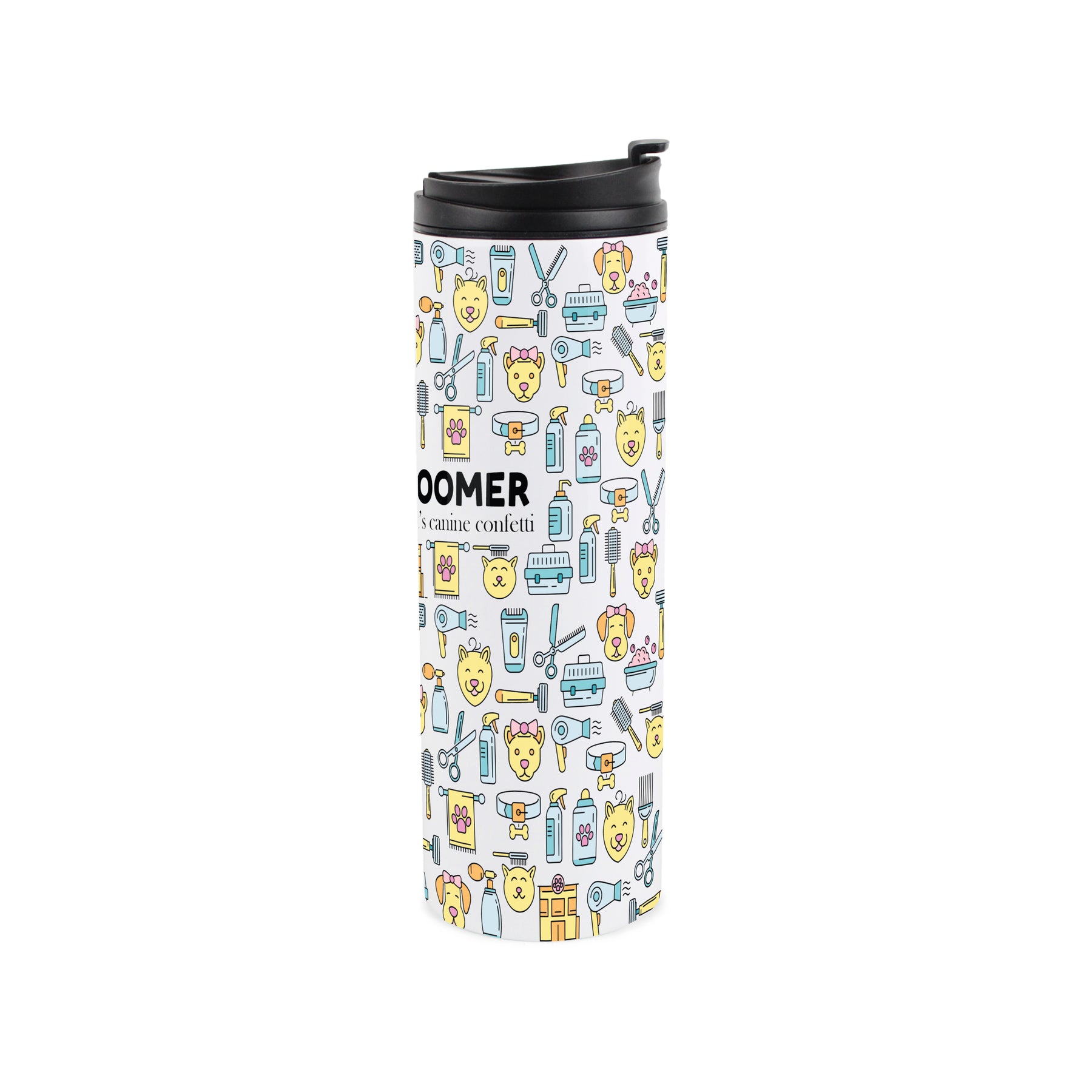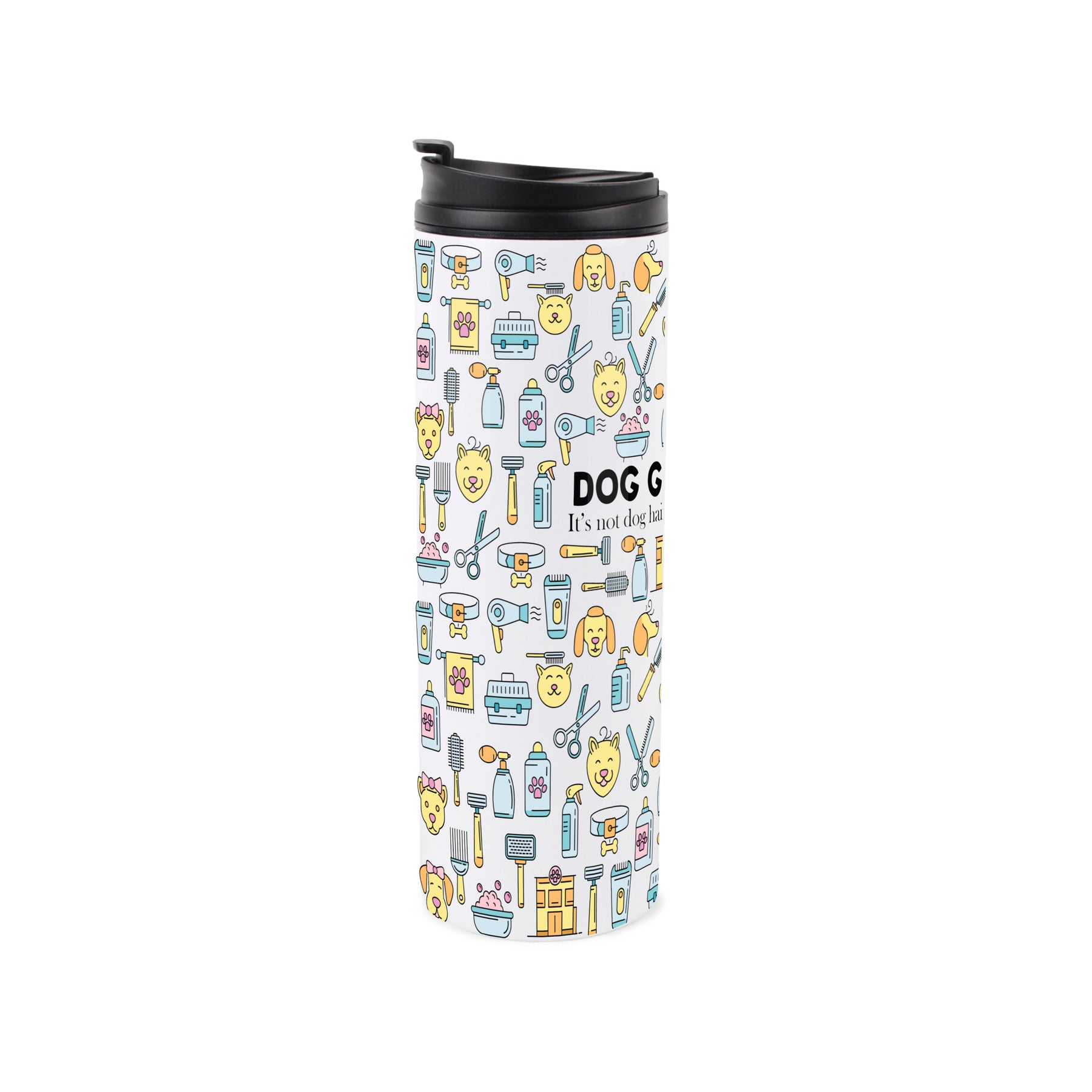 This dog groomer-themed stainless steel travel flask is a perfect gift for any dog groomer or pet pamperer you know. Featuring a print filled with all the things you'd expect to find in a grooming salon, from scissors and shampoos, to clippers and dryers, along with text quoting "Dog Groomer - It's not dog hair, it's canine confetti" on the front, this will be sure to make their hot drinks taste even better!