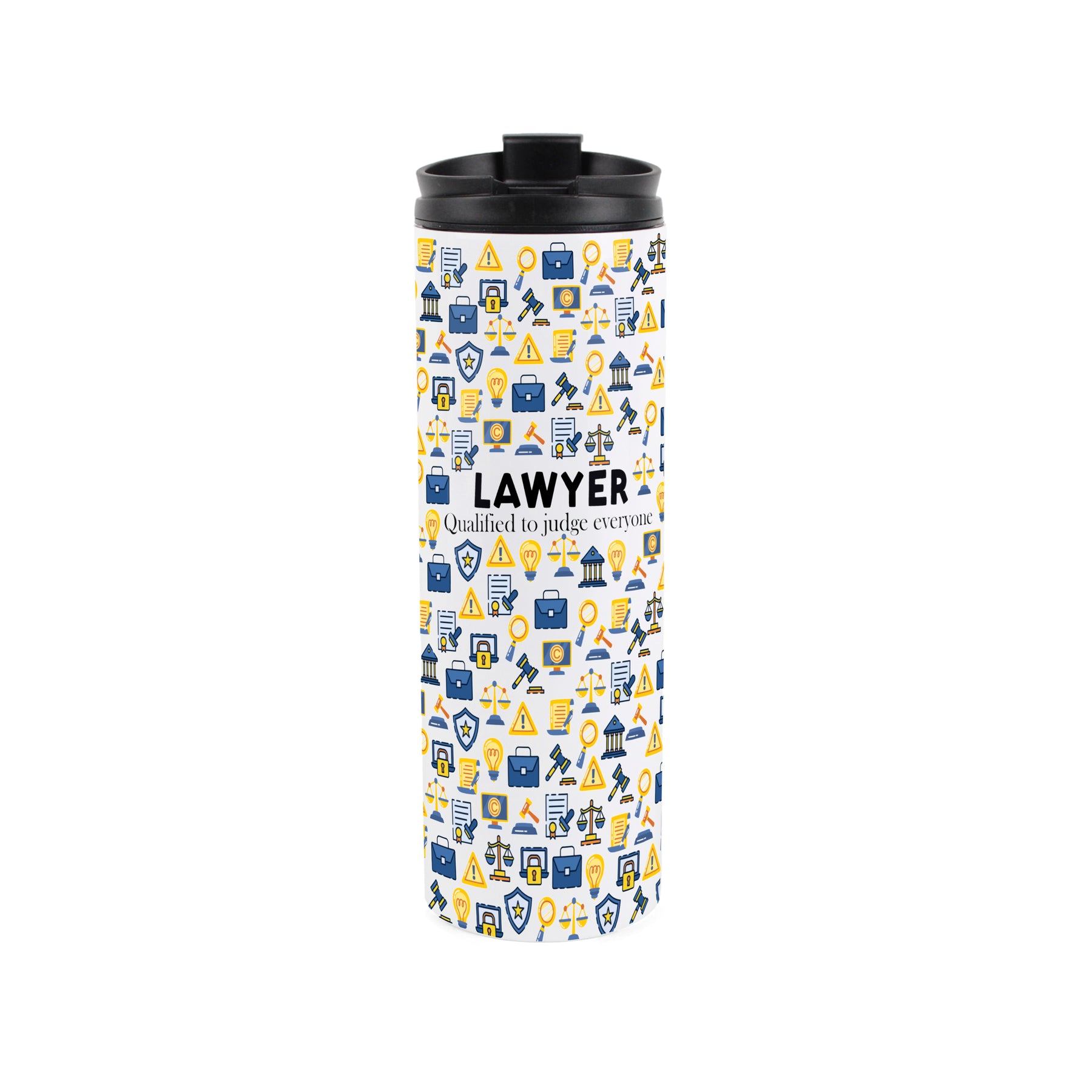 This comical stainless steel travel flask is a perfect gift for any lawyer you know. Featuring a range of illustrations relating to a day in court and the investigations involved leading up to the moment of sentencing, partnered with text quoting "Lawyer - Qualified to judge everyone" on the front, this is sure to make them struggle to keep a straight face while judging everyone.. I mean, judging the case!