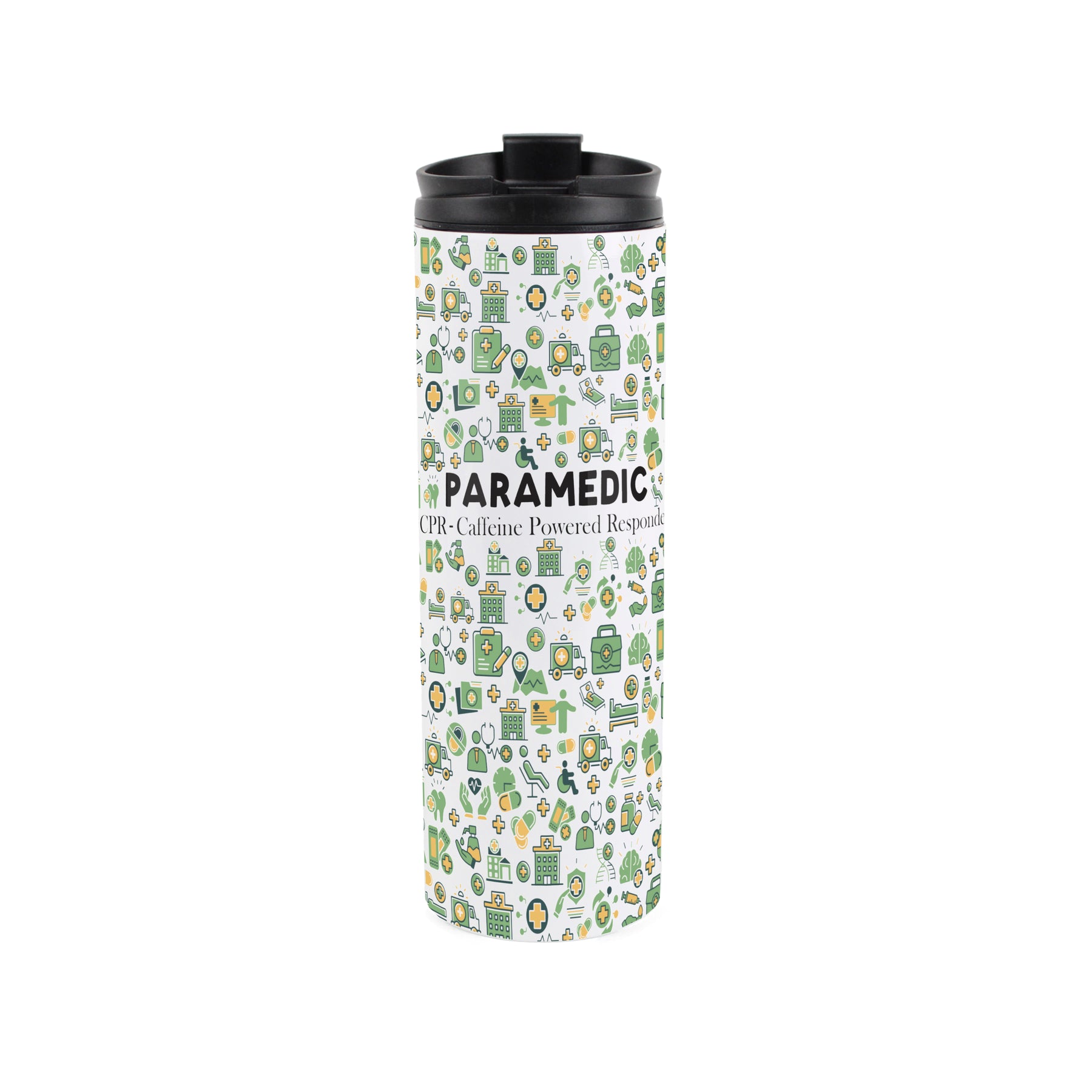 This novelty stainless steel travel flask is the ideal gift for any paramedic you know! Featuring cartoons relating to their busy days filled with saving lives, partnered with text quoting "Paramedic, CPR - Caffeine Powered Responder" on the front. Sure to keep them hydrated when they get the chance for a quick coffee break!