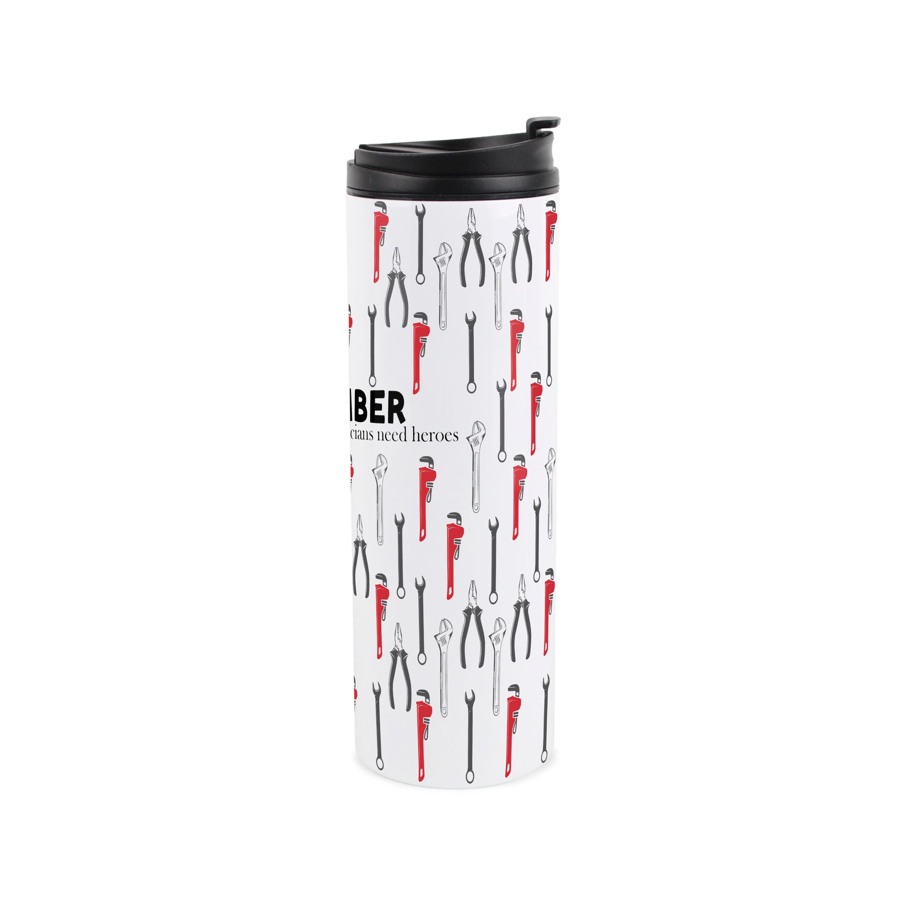 This comical stainless steel travel flask features a spanner, wrench and plier themed print, with the fun quote - 'Plumber - Because even electricians need heroes' on the front. Perfect for gifting to friends and family in the trade, this will be sure to make their hot drinks taste even better, while giving them a chuckle!