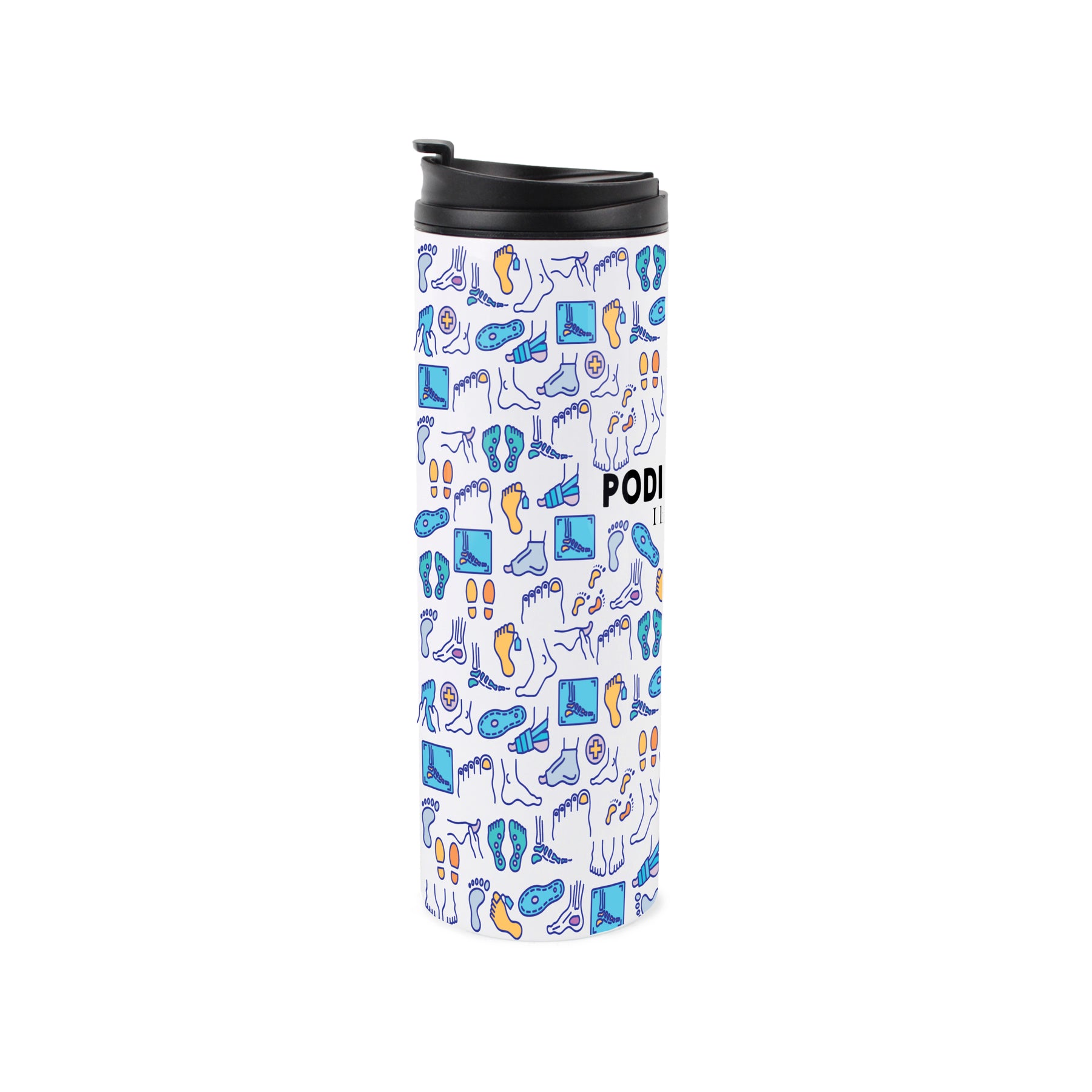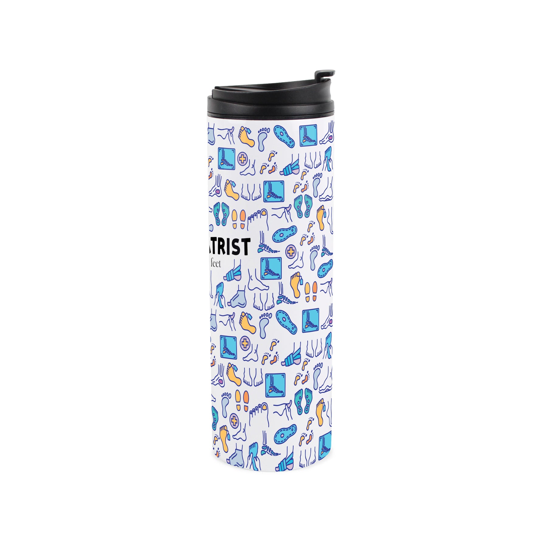 This foot-themed stainless steel travel flask is a perfect gift for any podiatrist you know. Featuring a print filled with feet (much like the day of a podiatrist), partnered with text quoting "Podiatrist - I like feet" on the front, this will be sure to be their tumbler of choice when they get the moment for a tea break between clients!