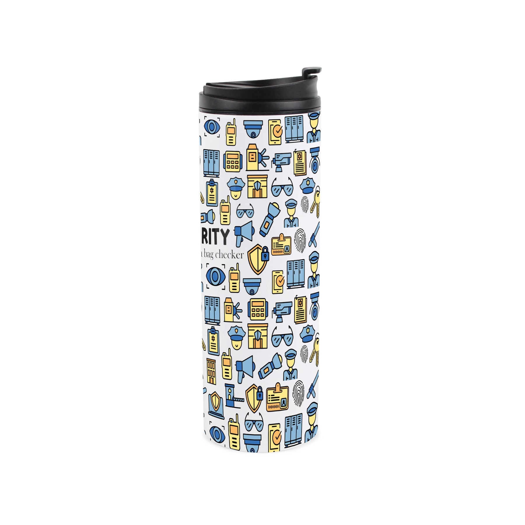 This illustrated stainless-steel travel mug is a perfect gift for anyone you know that works in security. Featuring a design filled with finger prints, ID passes, CCTV, safety and protection equipment and more around the flask, partnered with comical text quoting "Security - Professional tea bag checker" on the front, this will be sure to make them smile.