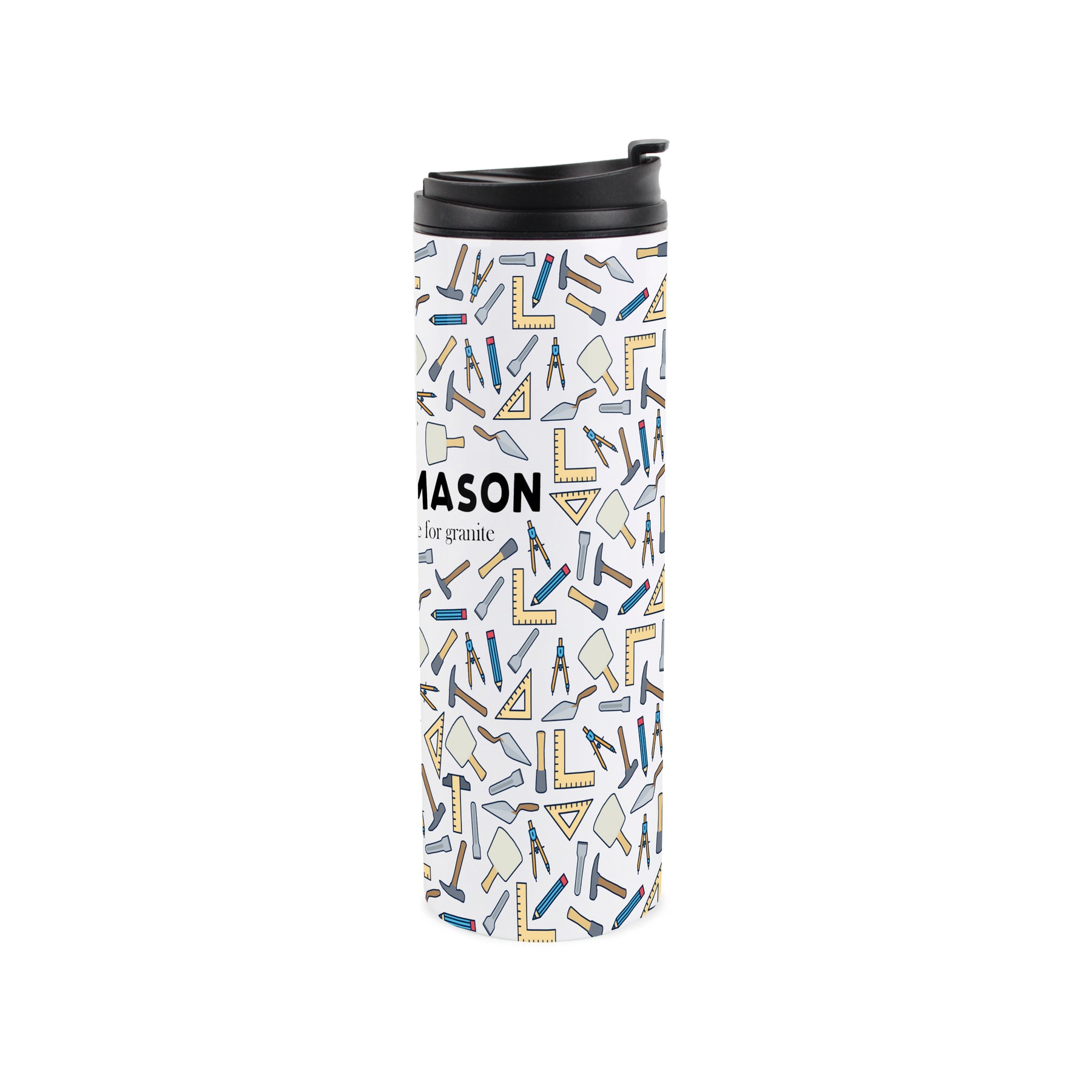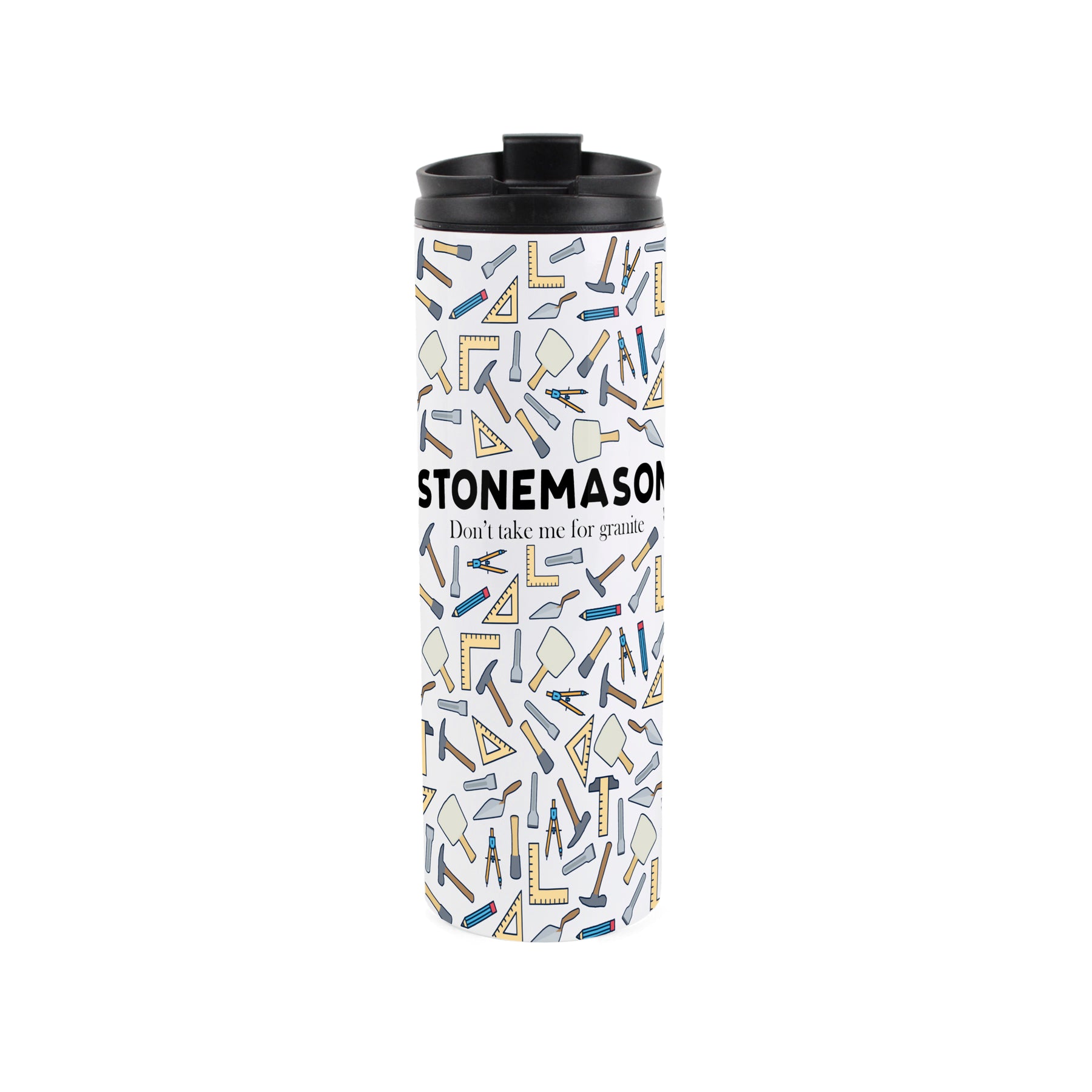 This comical, stainless-steel travel flask is a perfect gift for any stonemason in your life. Featuring a range of tool & measurement themed illustrations, with text quoting 'Stonemason - Don't take me for granite' on the front, this will be sure to give them a chuckle during long days of cutting & preparing materials!