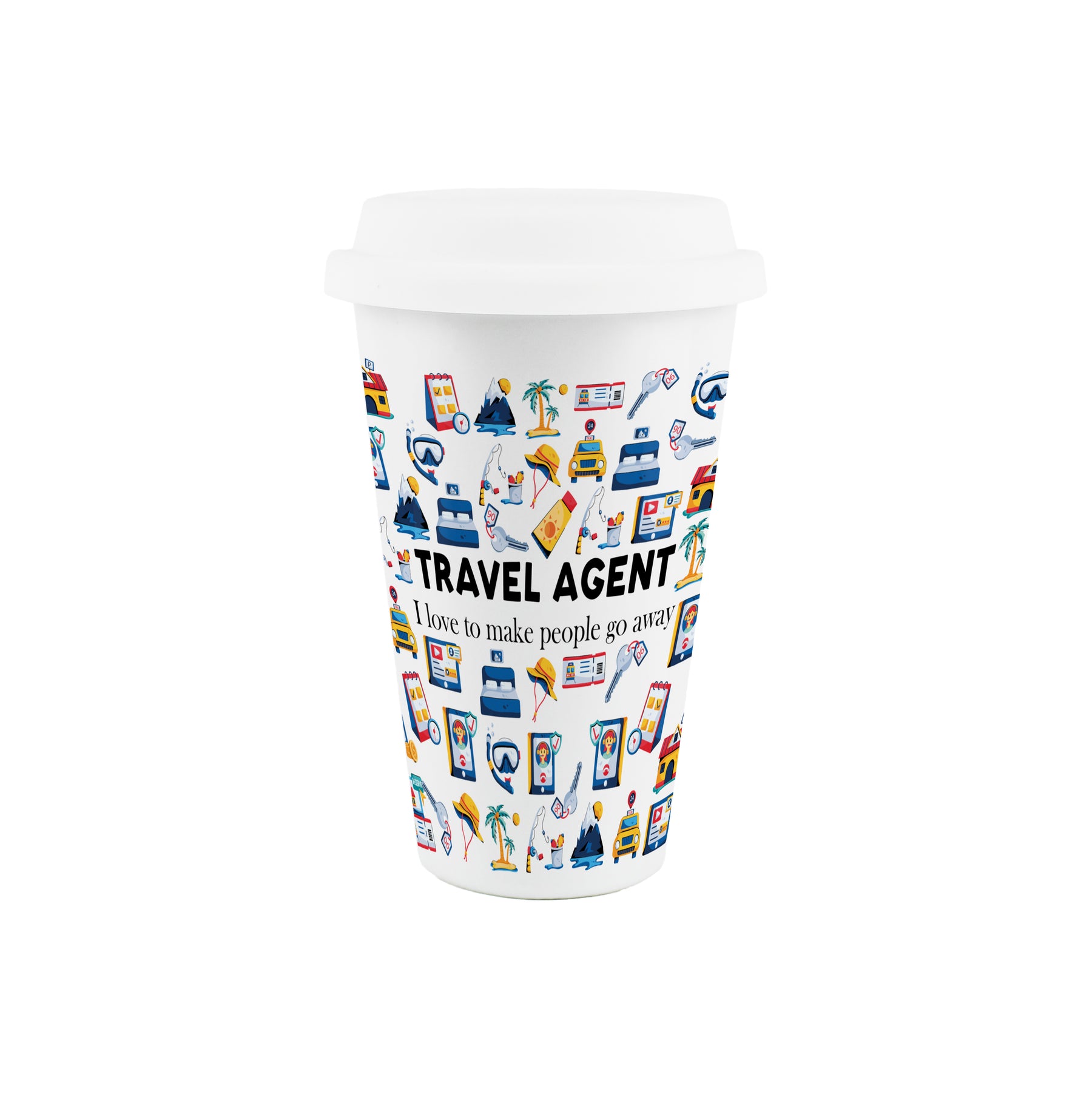 This holiday-themed ceramic travel mug is a perfect gift for any travel agent in your life. Featuring illustrations which will all have you tempted to book a holiday of your own, partnered with text quoting "Travel Agent - I love to make people go away" on the front, this tumbler is ideal for enjoying a coffee between promoting trips to the sun!