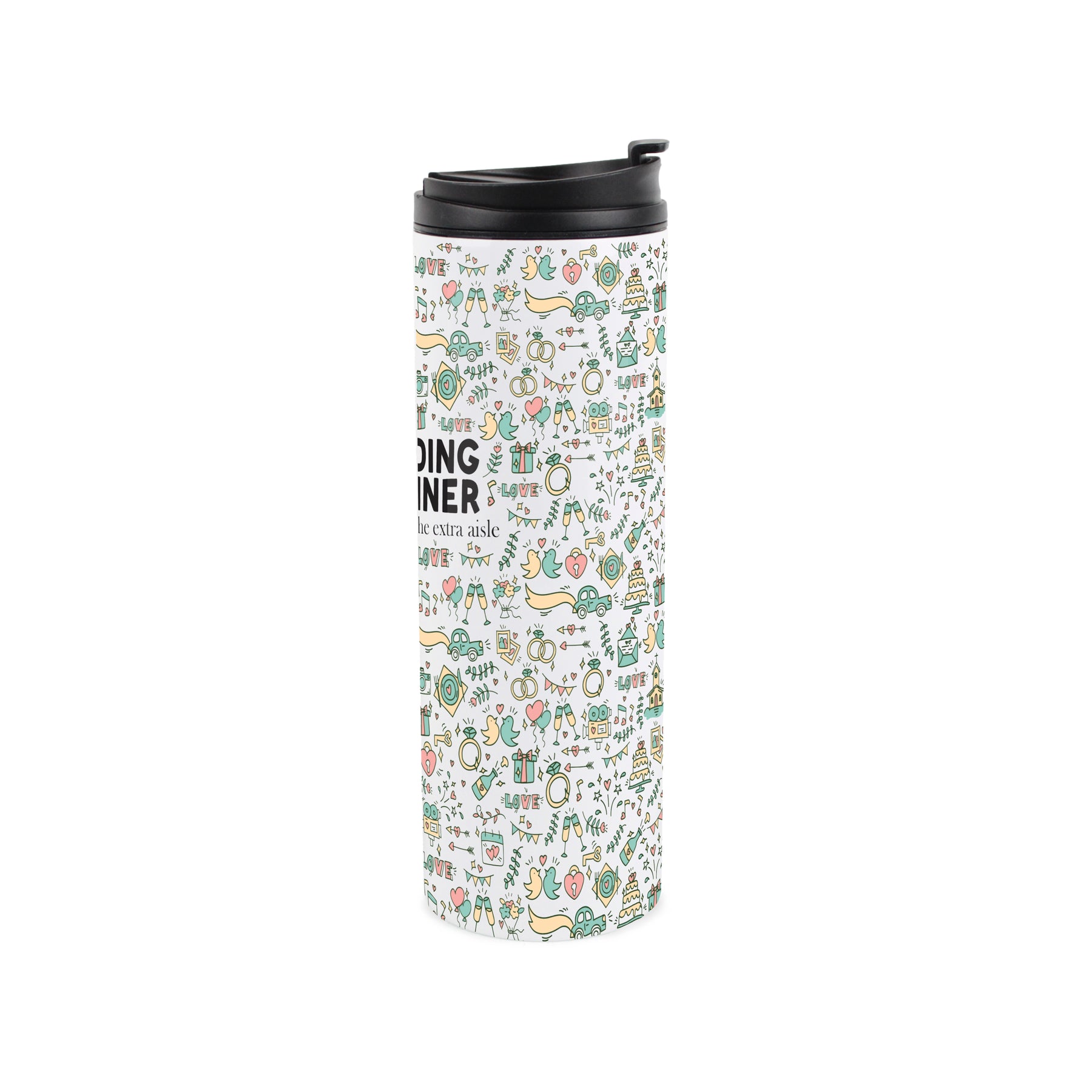 This travel flask is a perfect gift for the wedding planner in your life! Featuring a fun wedding inspired print all around the tumbler and the text "Wedding Planner - Always going the extra aisle" on the front, this will be sure to become their go-to flask when they need a coffee to get through a stressful day of organising.