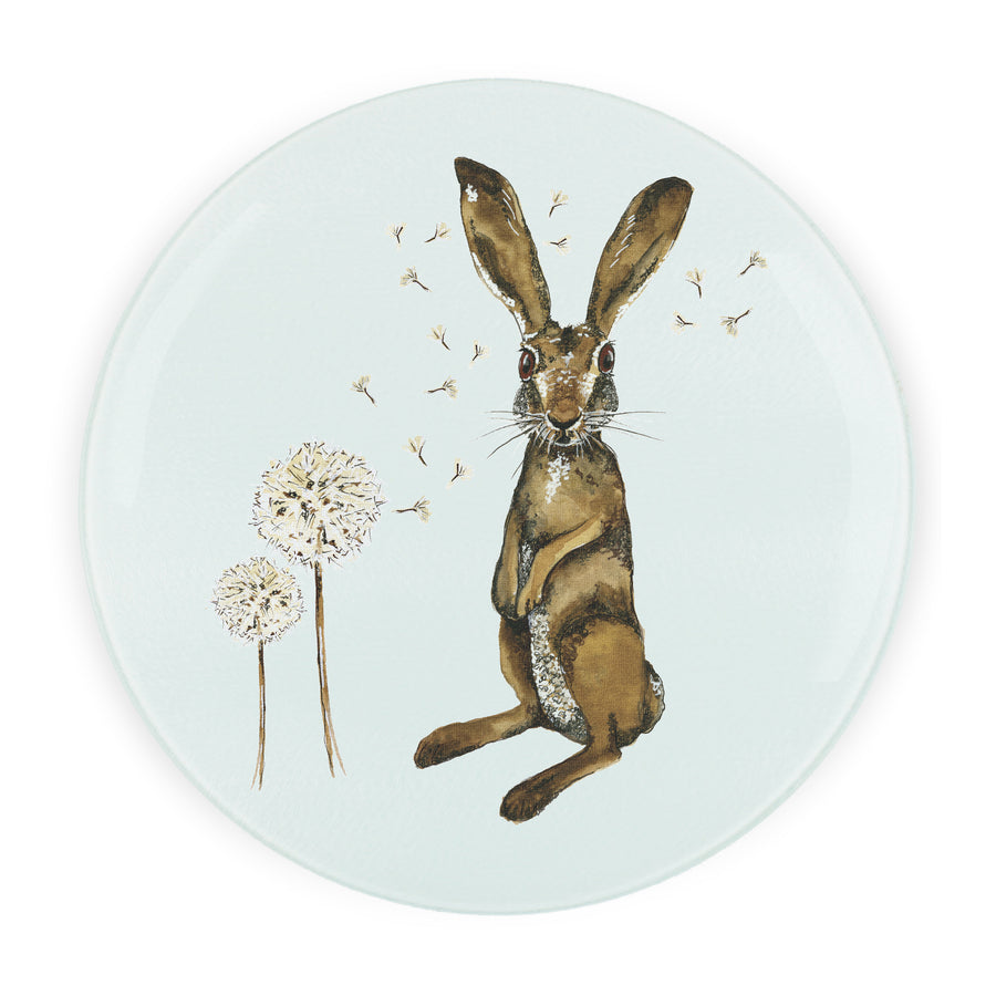 Purely Home Hare & Dandelions Round Glass Worktop Protector