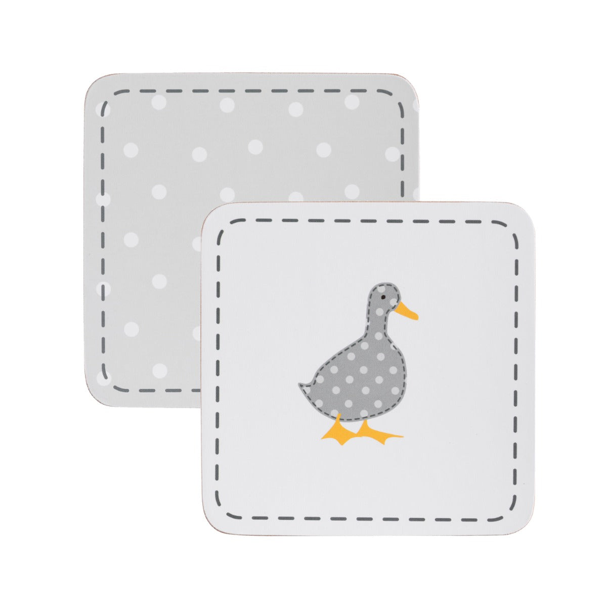 This set contains four coasters with a grey polka dot and matching duck design - and will bring a pleasant, farmhouse feel to any setting. What is more, the set comes in its own presentation box making it a perfect housewarming or birthday gift!