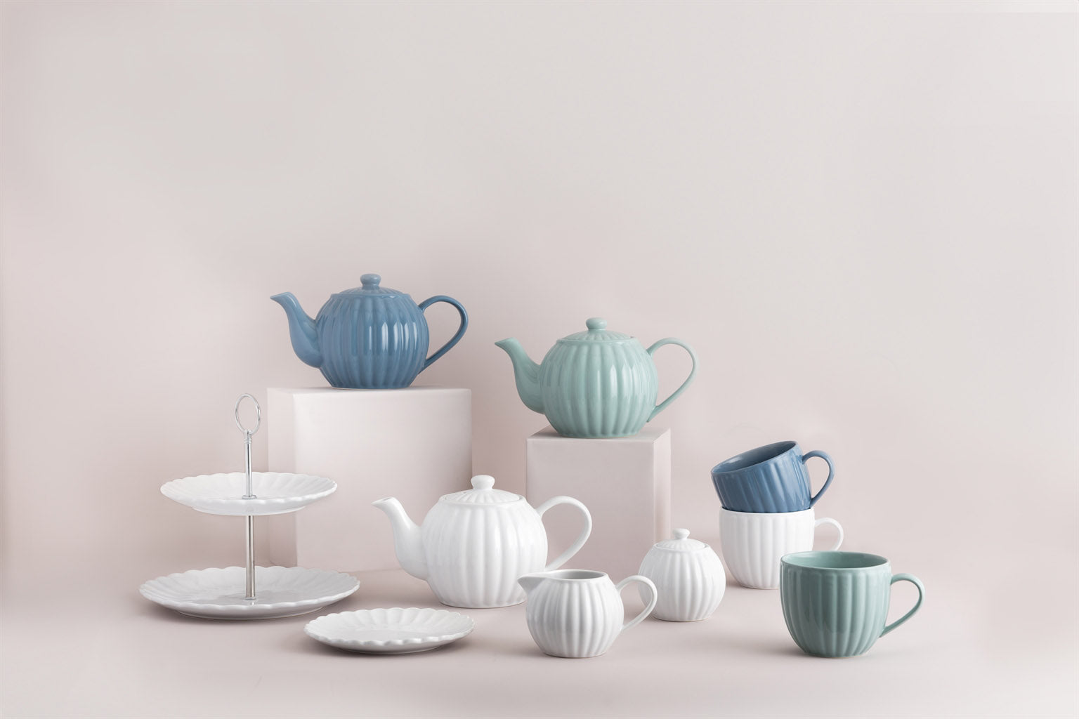 Elegantly crafted from fine stoneware, this stunning Price & Kensington teapot ensures your favorite brew stays hot for longer while safeguarding against chipping. Its versatility shines through, being both dishwasher and microwave safe - and is finished with fluted embossments in duck egg sheen.