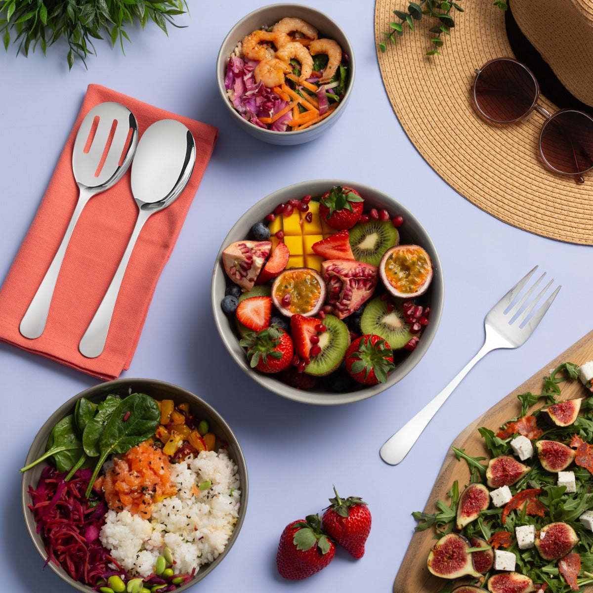 Containing a slotted spoon, a solid spoon and a giant fork, all your serving needs are covered!