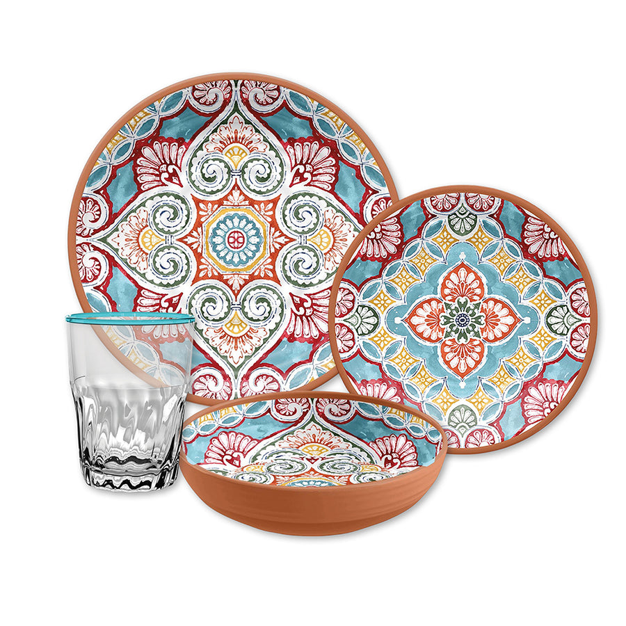 This Moroccan style dinner set is perfect for any adventurous and outdoor loving family. With its break-resistant features, it is ideal to either use when camping or for a romantic, alfresco dinner. This set contains dinner plates, side plates, bowls and tumblers - everything you could need to serve a three course feast!