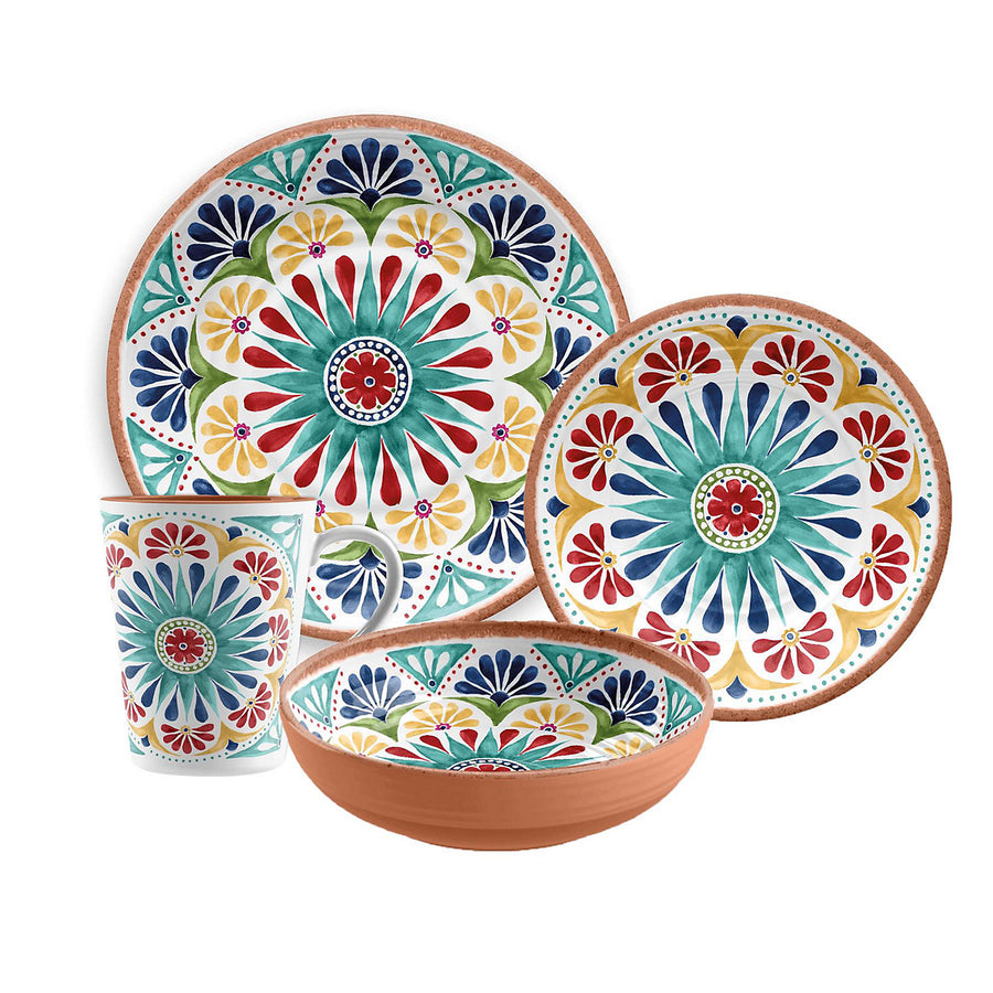 Rio Medallion Melamine Dinnerware Set with Mugs