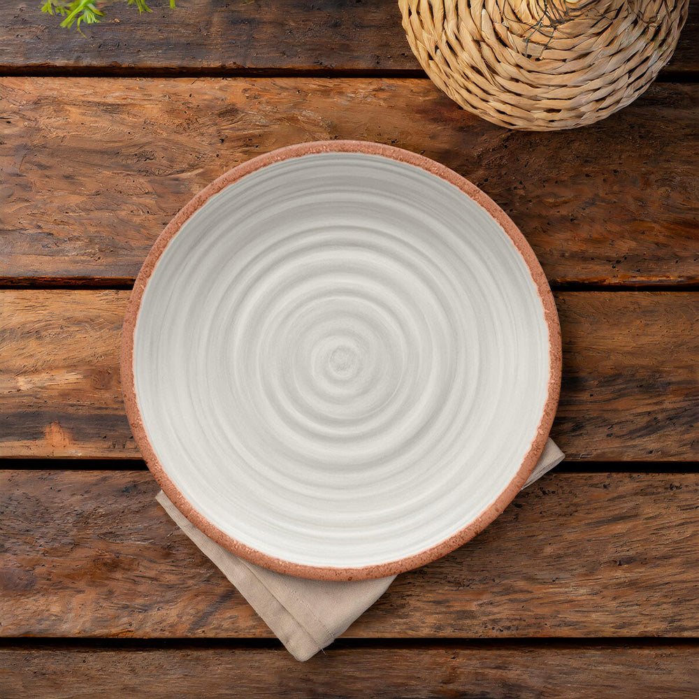 Whether you are camping, enjoying a meal in your garden, or hosting a dinner party, this set of beautiful ivory swirl terracotta look dinner plates are ideal to add an earthenware, rustic aesthetic to your table. What is more, due to their rather substantial size and because they are made from durable melamine, these dinner plates can be used for nibbles and snacks or for outdoor lunches and picnics.