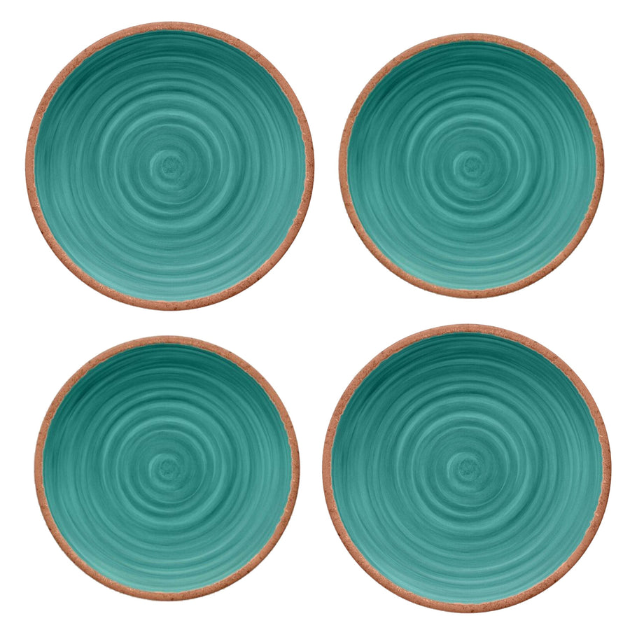 Wow your dinner guests with this beautiful turquoise swirl, terracotta look dinner set. Containing dinner and side plates, this set is perfect for adding an earthenware, rustic aesthetic to your table. So, whether you are camping, enjoying a meal in your garden, or hosting a dinner party, this set is the ideal companion to your culinary plans.