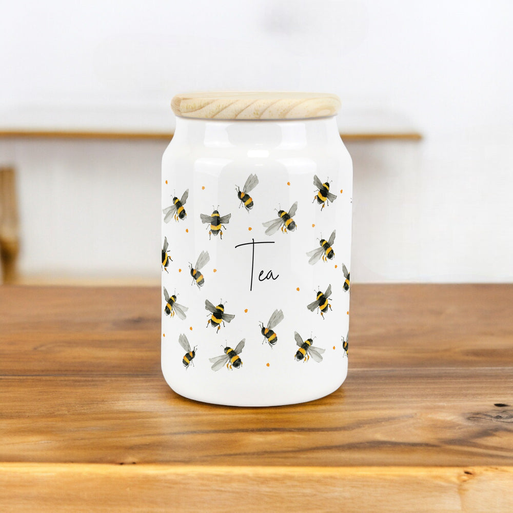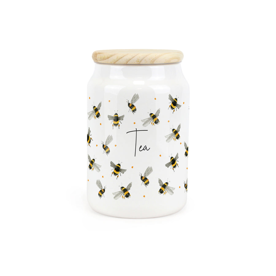 Who doesn't love bees? Create a buzz in your kitchen with these stunning ceramic storage containers - the perfect addition to any bee-lovers home! Each canister features sweet illustrations of flying bees, designed by artist Rhiannon Chauncey, paired with black text.