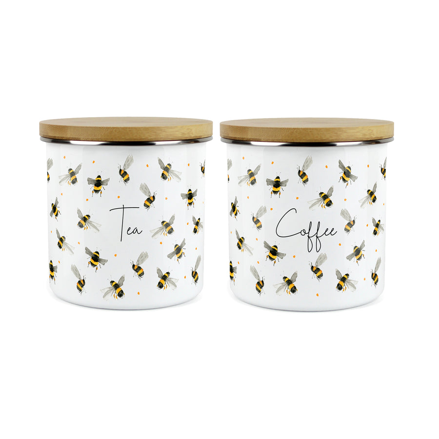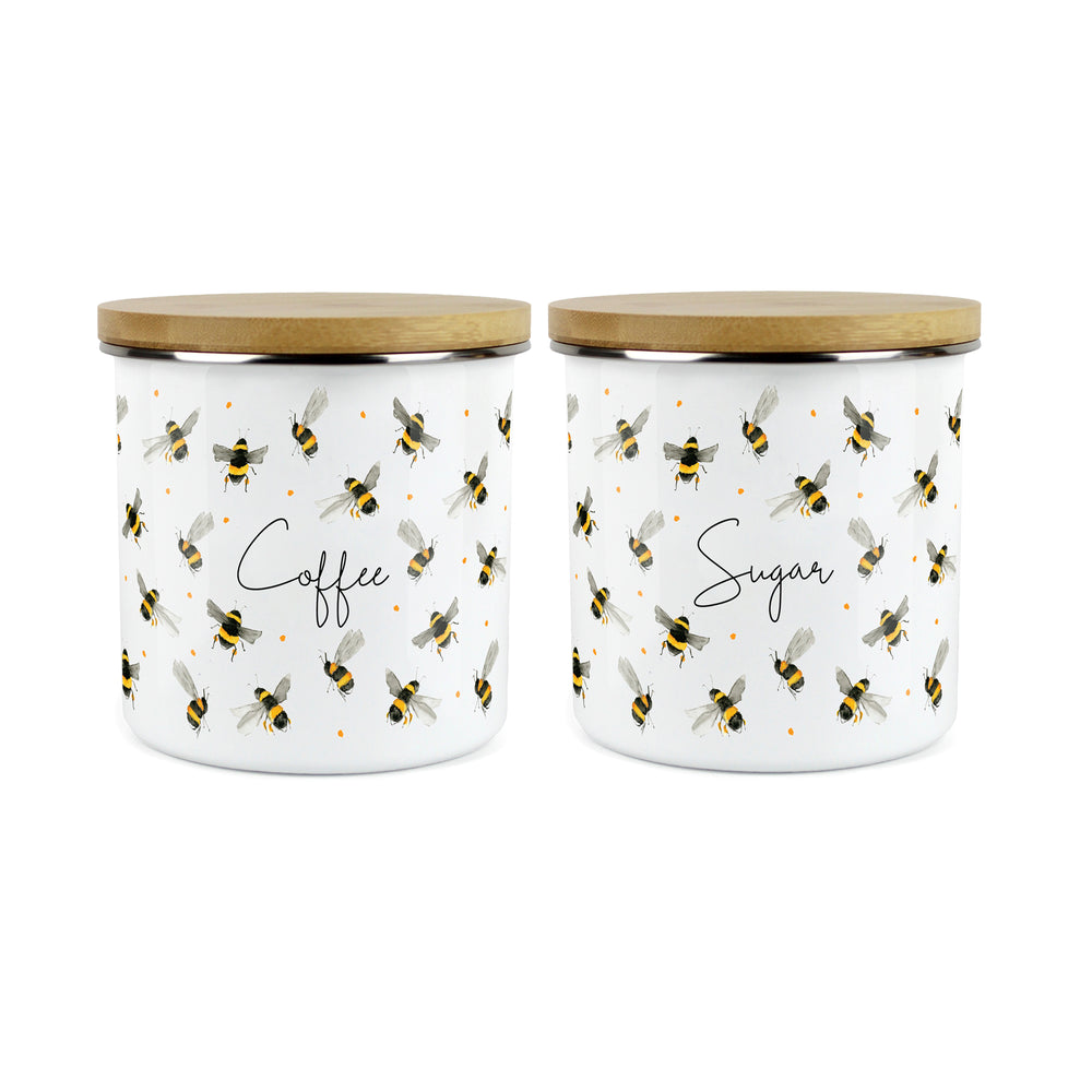 Who doesn't love bees? Create a buzz in your kitchen with this gorgeous storage canister duo, featuring hand-painted bumblebee watercolour artwork by artist Rhiannon Chauncey. Perfect for storing your kitchen essentials, this set of sturdy containers are available in two sizes so that you can choose the best suited option for your home.