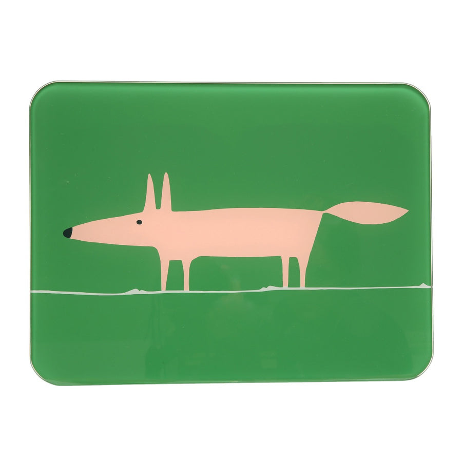 Made from tough tempered glass, this durable, scratch-resistant worktop saver is a must-have in any kitchen! Featuring the fun Mr Fox design in green and salmon pink colours, the rectangular glass cutting board is sure to add some fun to your kitchen counter.