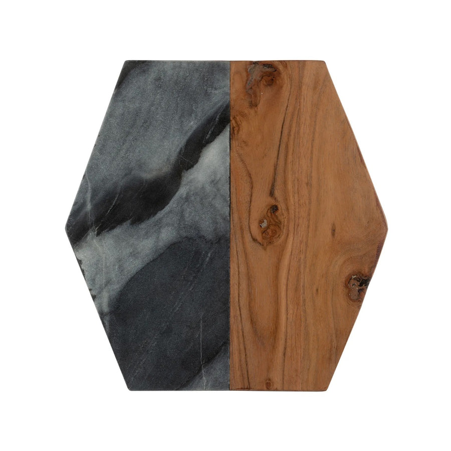 This gorgeous hexagon-shaped serving board is perfect for serving appetisers, desserts or cheeses and charcuteries in sophisticated style! The sparkle in the marble, contrasting with the grain and brown shades within the acacia wood allow you to present you food with elegance and grace. Stun your guests with mouth-watering treats on this serving board, with the knowledge that the marble section is naturally cool making it ideal for keeping cheeses and cold meats at the correct temperature once they have been presented to your guests.