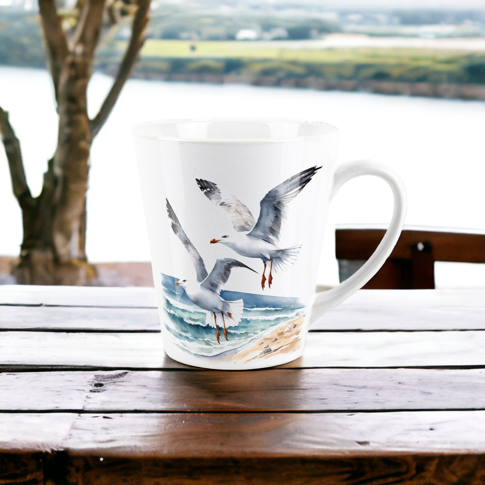 This lovely ceramic latte-style mug brings the seaside to your kitchen, with a pair of seagulls flying along the coast. Perfect as a gift for that person in your life who loves to be near the seaside!