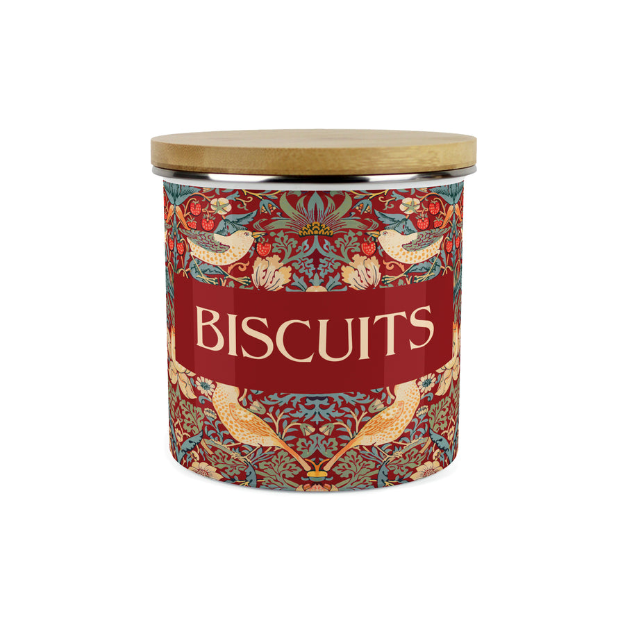 Purely Home Strawberry Thief Enamel Biscuit Canister - Red