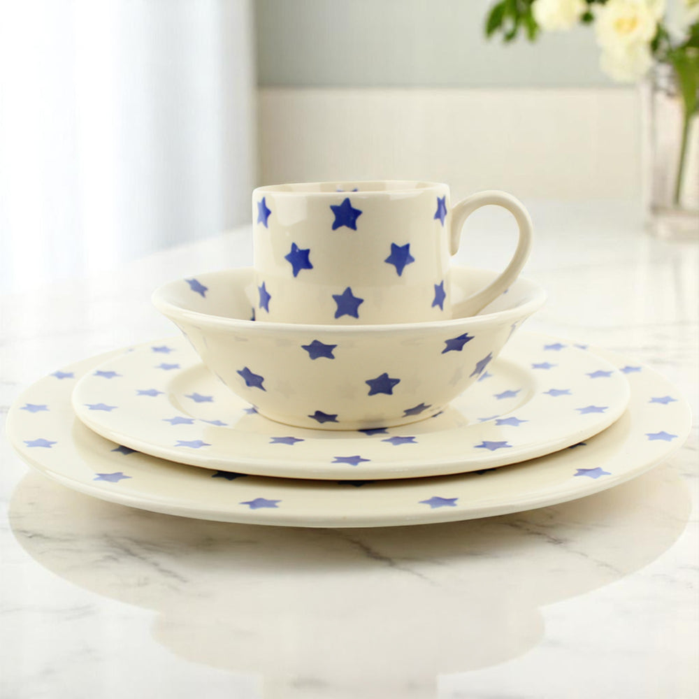 This dinnerware set made by Peregrine Pottery will bring a touch of luxury, handmade English cream ware into your home. Featuring a blue star motif design, individually hand-printed, this collection is perfect for someone who loves the quaint charm of an English Country Cottage aesthetic.