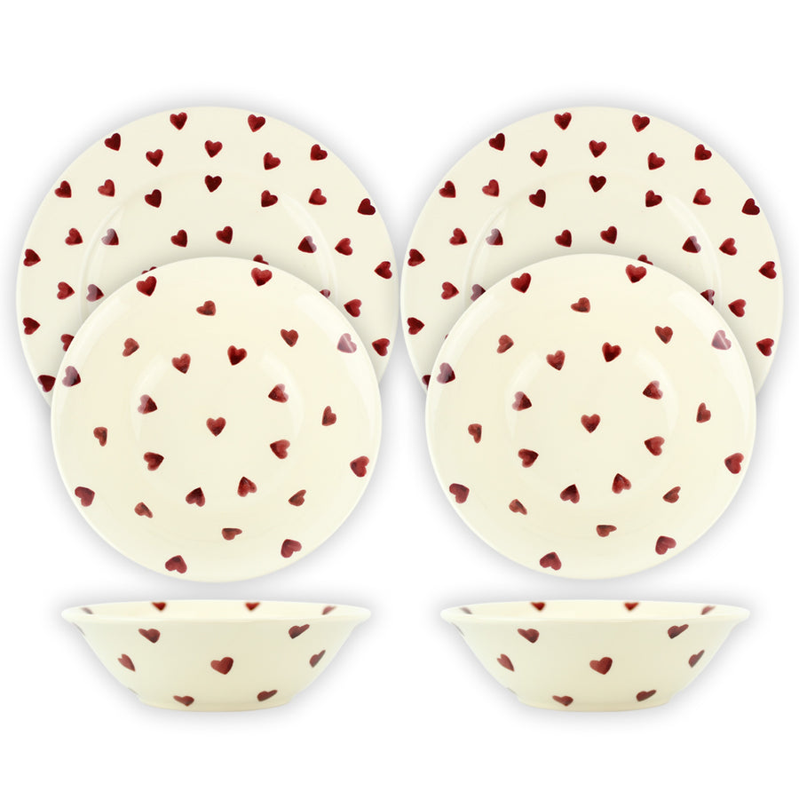 This dinnerware set made by Peregrine Pottery will bring a touch of luxury, handmade English cream ware into your home. Featuring a red heart motif design, individually hand-printed, this collection is perfect for someone who loves the quaint charm of an English Country Cottage aesthetic.