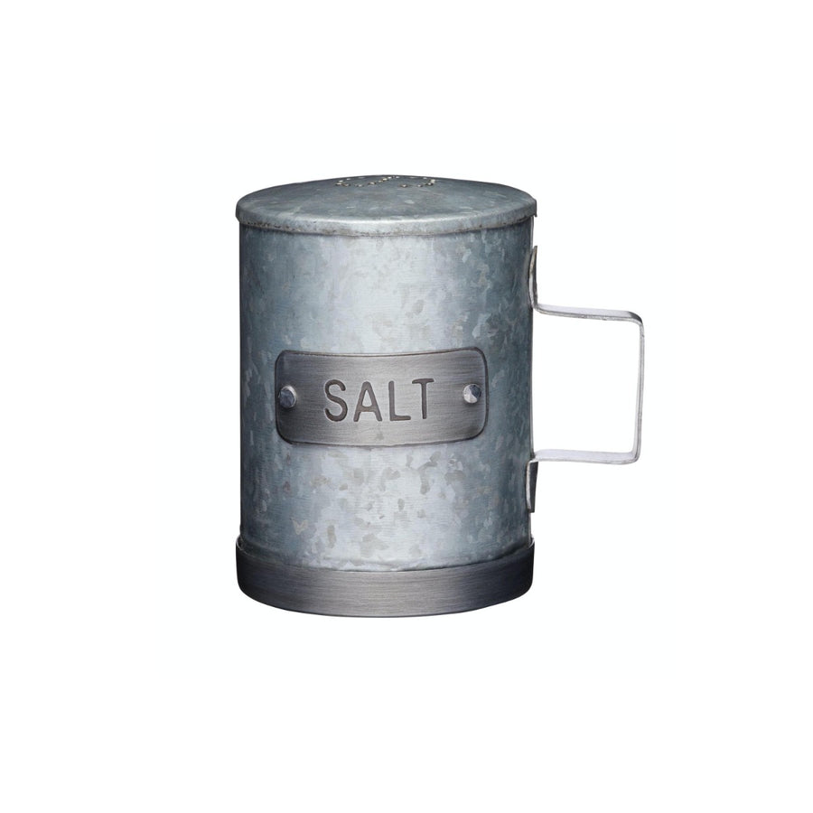 Embrace the elegance of industry in your home with this salt shaker from KitchenCraft’s Industrial Kitchen collection. Manufactured from galvanised steel with a sturdy side handle, a riveted tag embossed with ‘salt’, and a unique tankard-esque appearance, this salt shaker will sit at pride of place on any table!