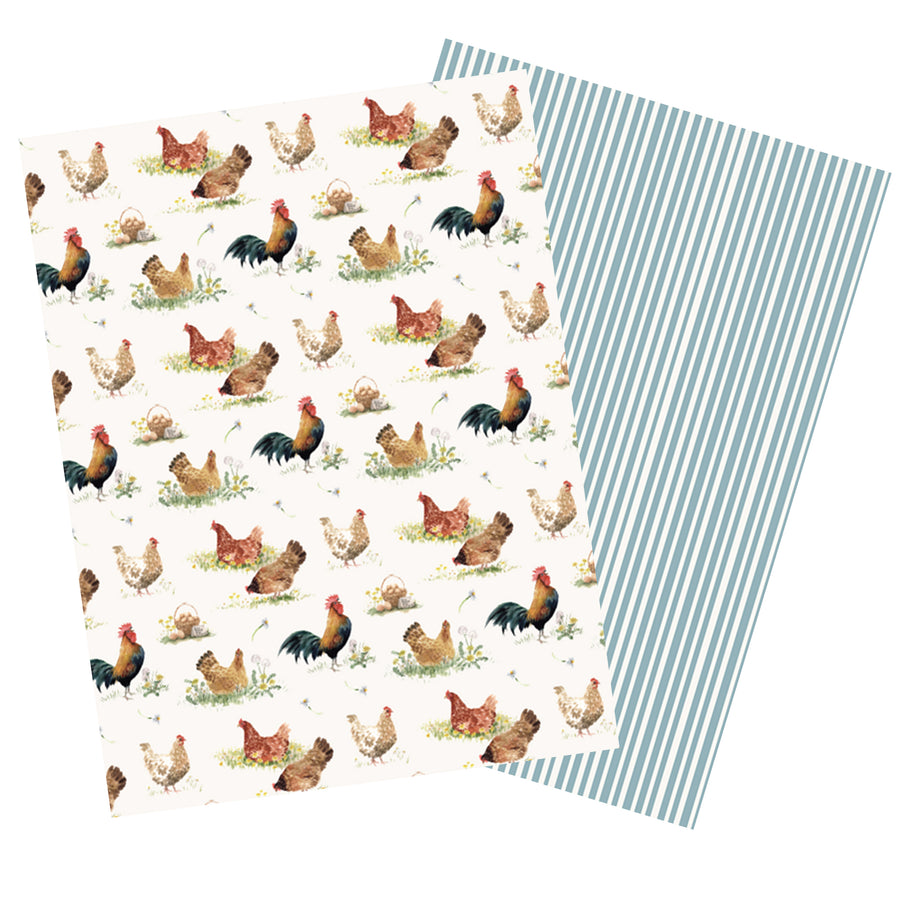 This set of quality tea towels are a wonderful addition to any kitchen! With one tea towel featuring charming illustrations of hens and eggs, and the other with stylish blue stripes, you can pay homage to the country life many of us yearn for!