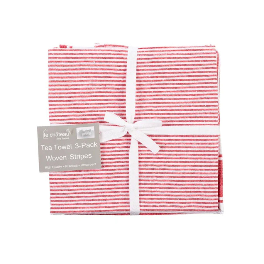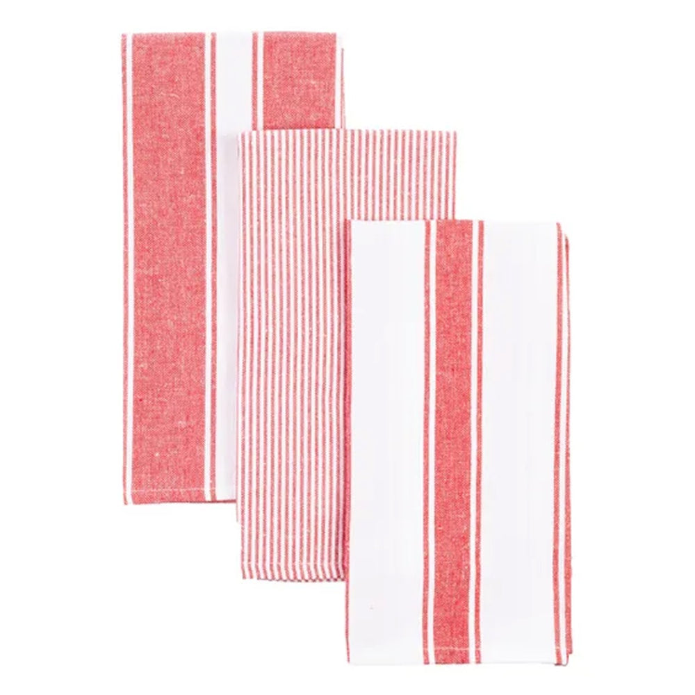 Add a traditional touch to your kitchen! This set of three striped tea towels are made from 100% cotton, meaning they are just the thing for drying up dishes and wiping down surfaces. Timeless and versatile, the assorted red and white stripe designs woven into the kitchen linens are sure to bring a sense of calm to any modern or classic kitchen.