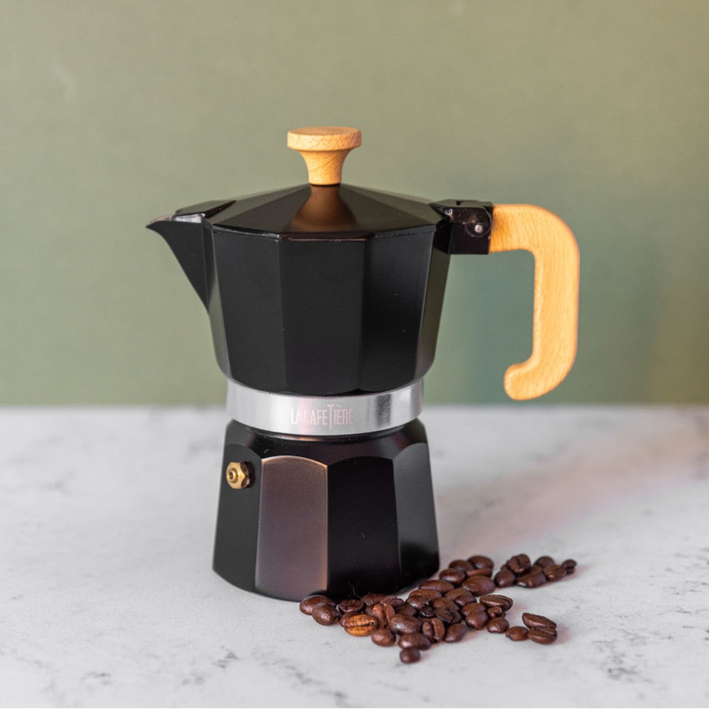 The modish, sheen matte black espresso maker compliments La Cafetiere's distinct sense of style, and is presented in a smart gift box. Also available in a '6-cup' capacity.