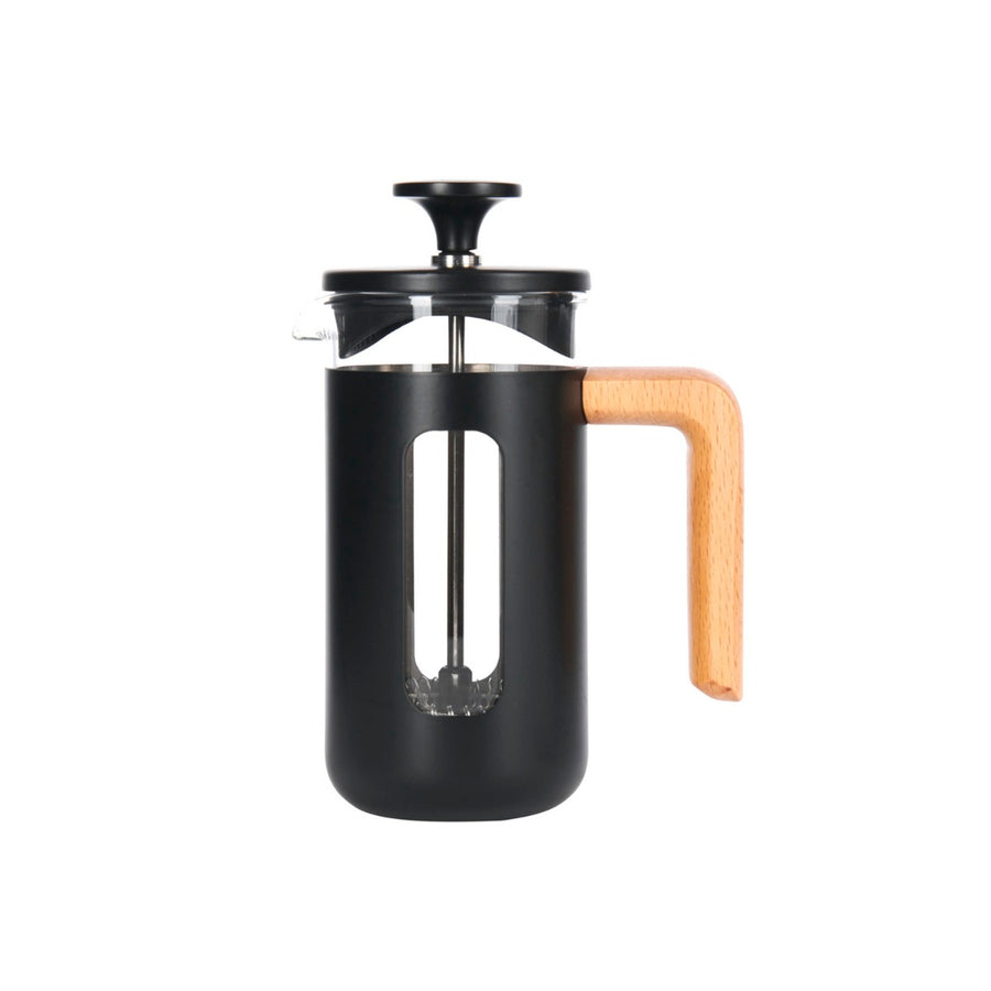 Enjoy a moment of peace & quiet with a deliciously rich coffee made in this stylish black cafetiere. Made from rust-resistant stainless steel and shock-resistant borosilicate glass with a birchwood handle, this cafetiere has a '3-cup' (350ml) capacity, a fine mesh filter and an easy pouring lip. What's more, the lid rotates 180° to close off the spout, which helps to retain steam and heat.