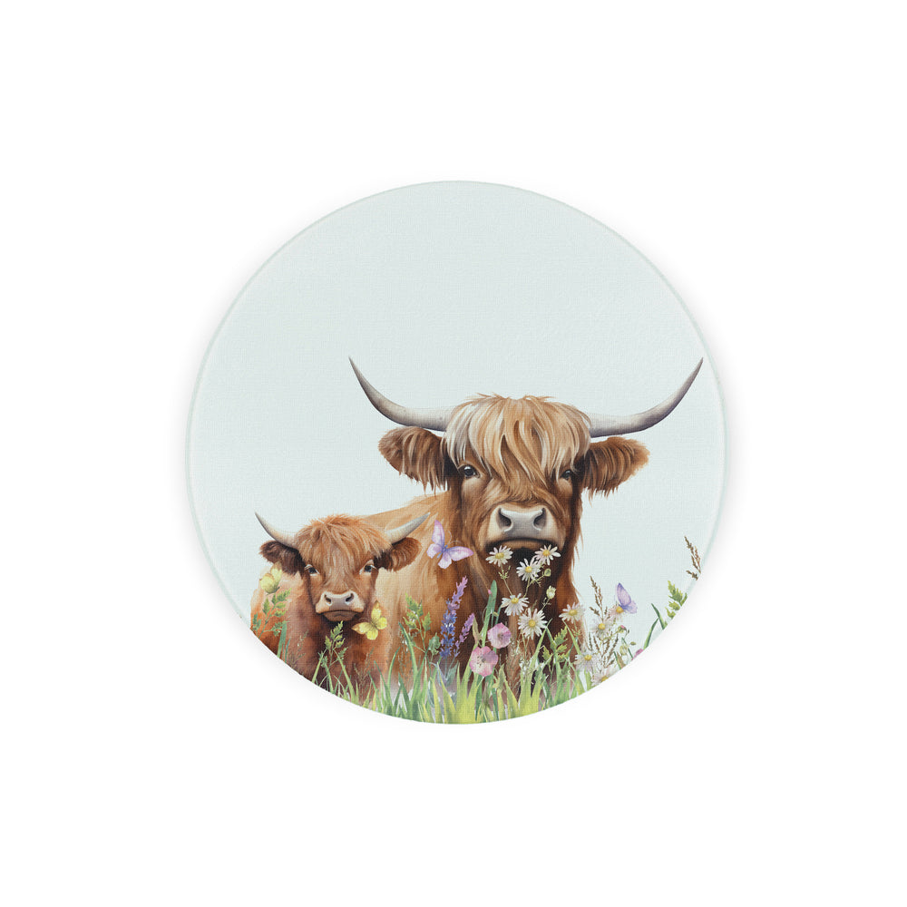 Purely Home Highland Cow & Calf Round Glass Worktop Protector