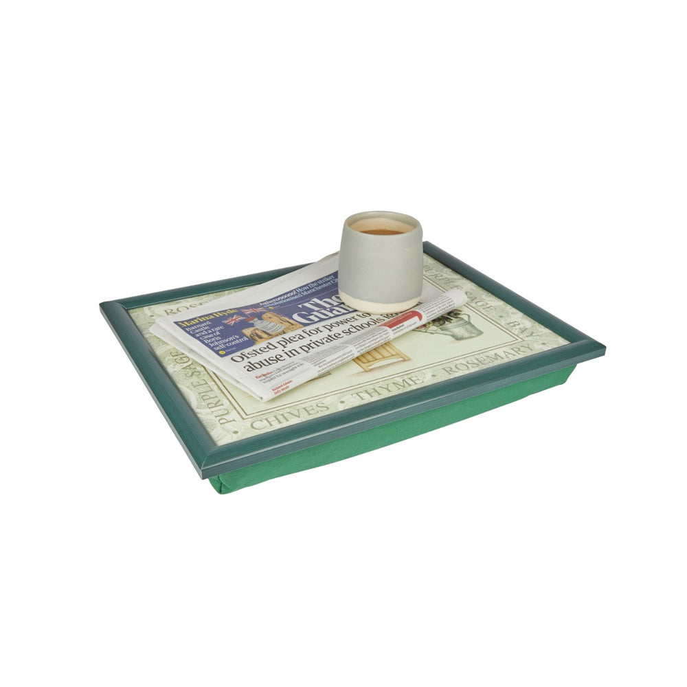 This lap tray is perfect for dinners in front of the TV, crafts and work based activities. It also features a green effect boarder and a bold green cotton cushion covering with bean bag interior.