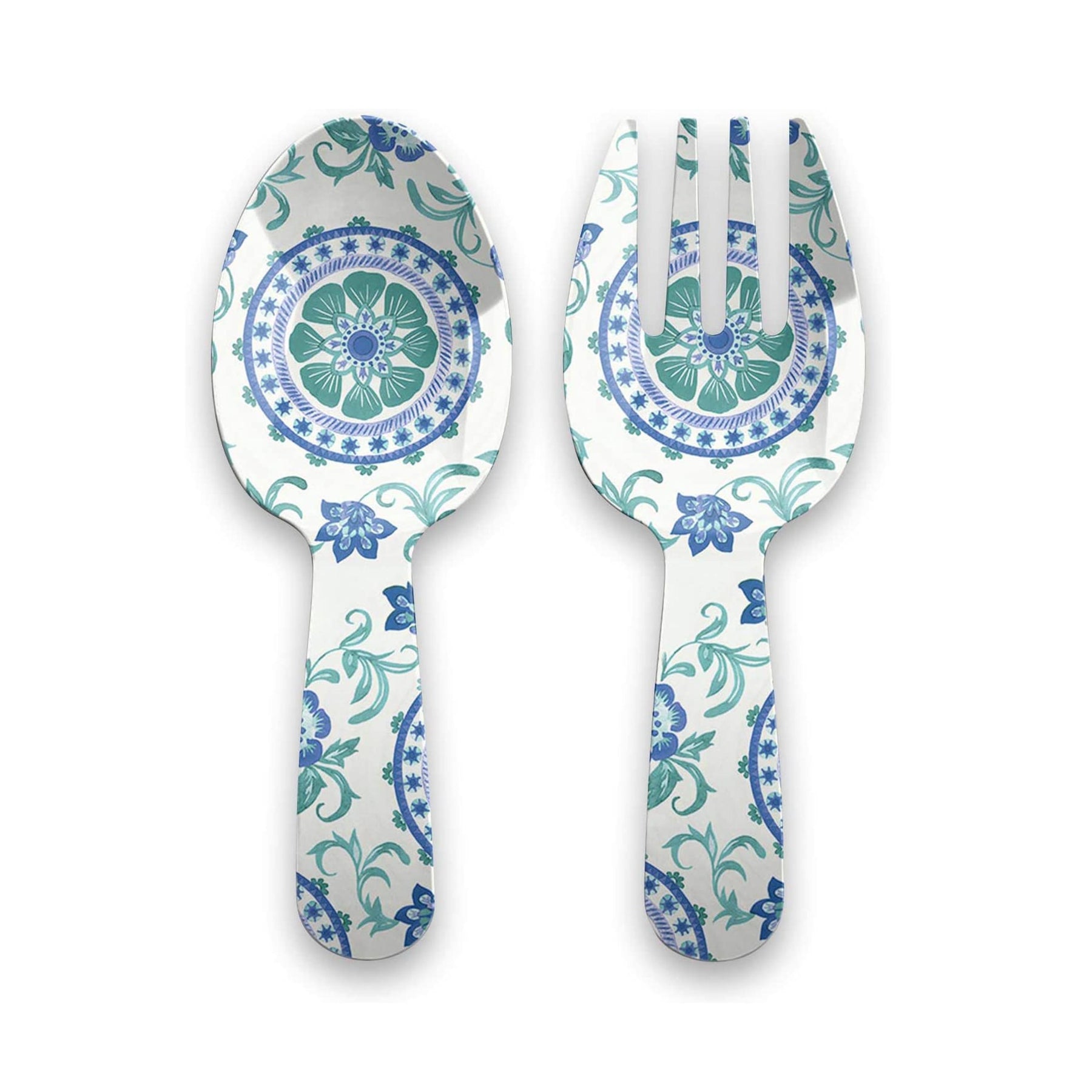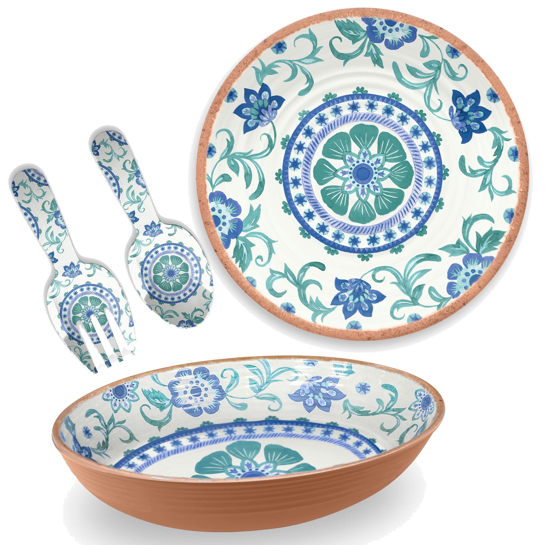 Turquoise Floral Melamine Salad Serving Set with Platter