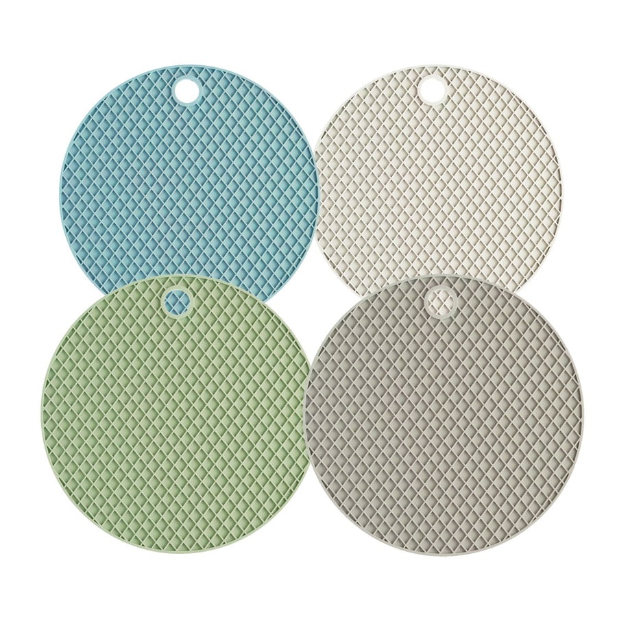 This set of trivets from Kitchencraft's colourworks range combine style and flexibility and are perfect for keeping hot pots and pans from damaging your work top! They are made from silicone and come as a pack of four in mint, green, cream & grey.