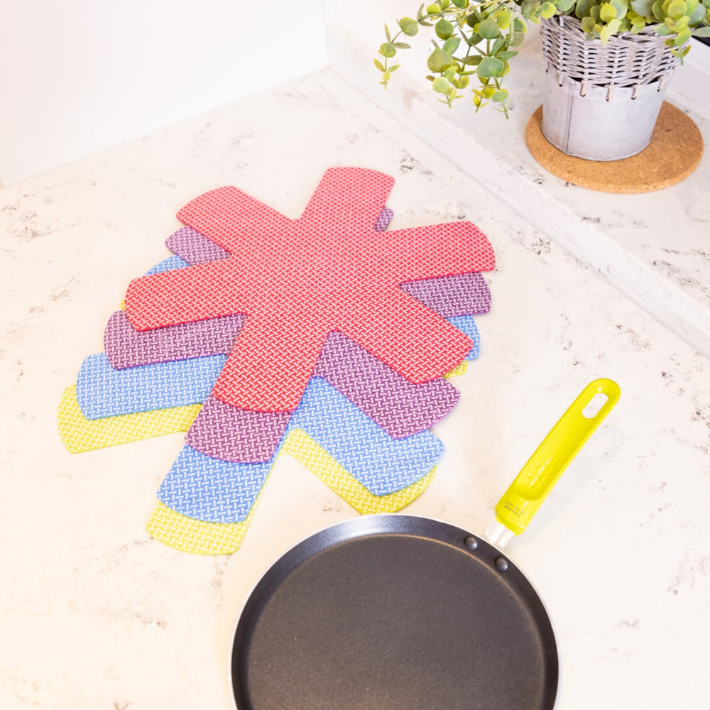 Not only will they add a splash of vibrant colour to your kitchen cupboards, these non-slip protectors can also be easily slipped between pans to create a cushion effect, preventing noise and damage. This means that you avoid ugly marks and dents, as well as protecting the non-stick coatings on your pans to ensure they remain performing at their best - and last longer!