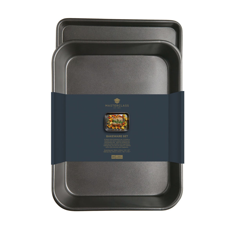 From the MasterClass range comes this delightful set that is perfect for budding bakers, keen chefs or as a housewarming gift for friends and family. The set comes with a baking tray that is perfect for making all types of sweet's, pastries and biscuits whilst the roasting pan is ideal for use with lasagna's, potatoes and a variety of hearty meals!