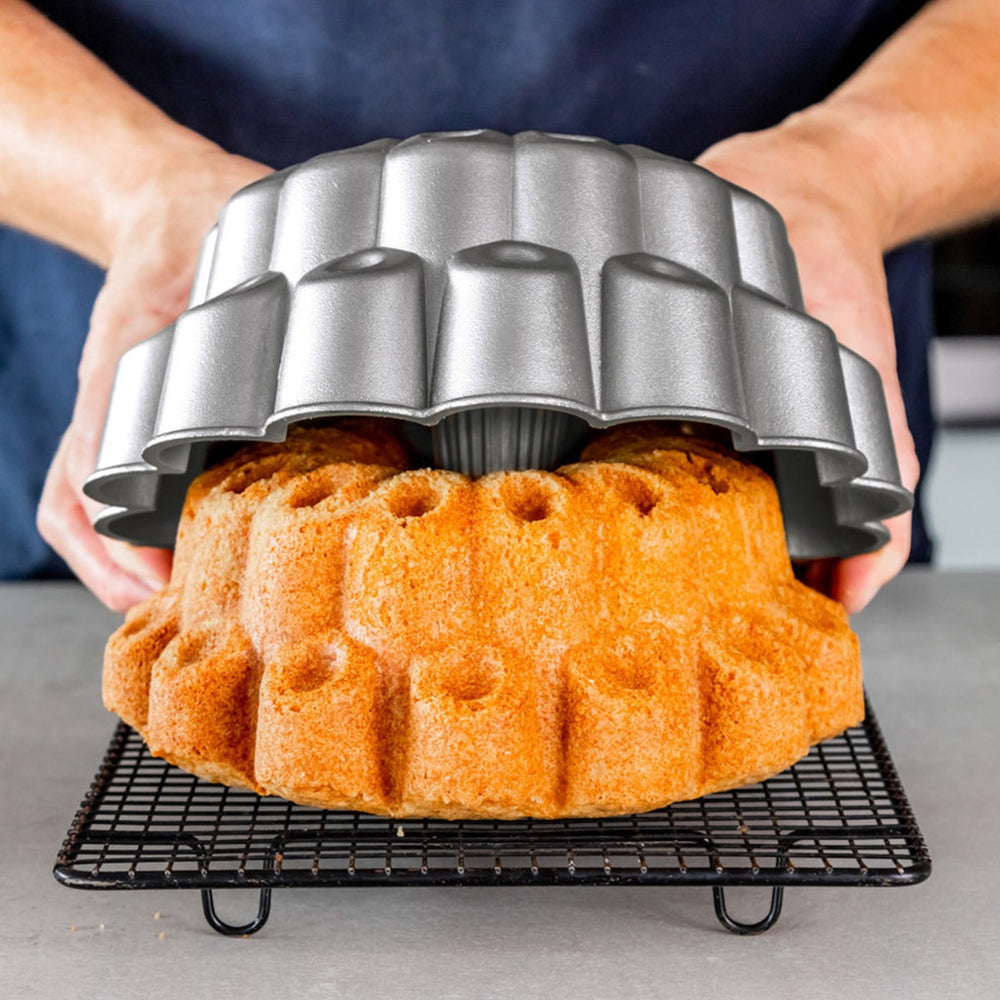 Ideal for those baking connoisseurs among us - this tiered cake tin is perfect for creating delicious decorative cakes and desserts! Manufactured from cast aluminium for even heat distribution, this tin has a non-stick coating and is dishwasher & oven safe.