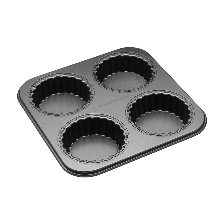 Ideal for those baking connoisseurs among us - this fluted tartlet pan from MasterClass is just the thing for creating quiches & pies, or for those with a sweet tooth - moreish jam tarts! Manufactured from heavy duty carbon steel, this pan features a non-stick coating and removable loose-bases, perfect for removing the bakes in one piece.