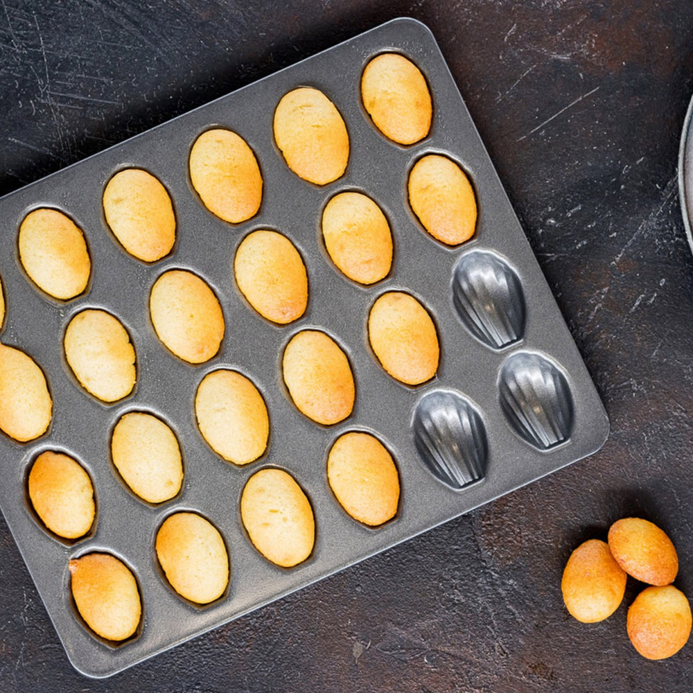 Bake traditionally light, delicate mini French madeleines with this specially designed pan! Made from heavy duty carbon steel with a non-stick coating, this pan is perfect for creating small shell-shaped sponge cakes with ease. Ideal to serve with an afternoon tea for friends or as a treat for yourself!