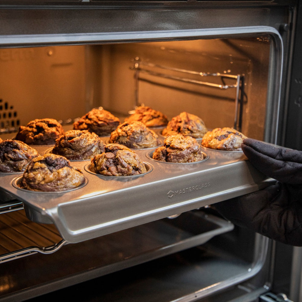 Ideal for those baking connoisseurs among us - this sturdy twelve hole muffin tin from MasterClass is ideal for baking cupcakes, muffins & more! Manufactured from heavy duty metal with a non-stick, frictionless surface for even baking and easy cleaning. With a specialist 'smart stack' design, this tin features a larger lip for safe handling in and out of the oven, and can be stored vertically for a clutter free cupboard.