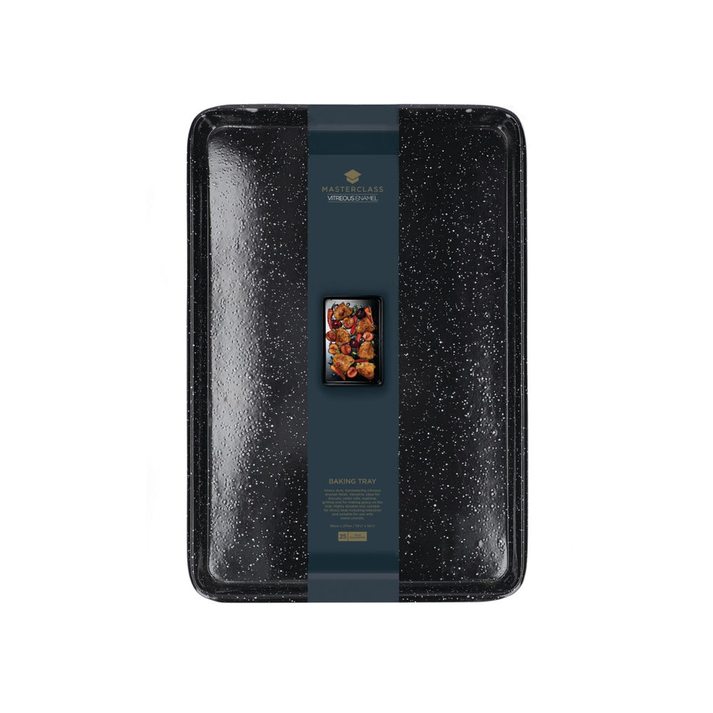 Ideal for those kitchen connoisseurs among us - this sturdy baking tray from MasterClass is ideal for baking scones and cookies! Manufactured from heavy duty 1mm steel with a durable enamel coating, this tray is suitable for use on all heat sources - including induction! Dishwasher, oven, fridge and freezer safe, you can even use metal utensils without fear of damage.