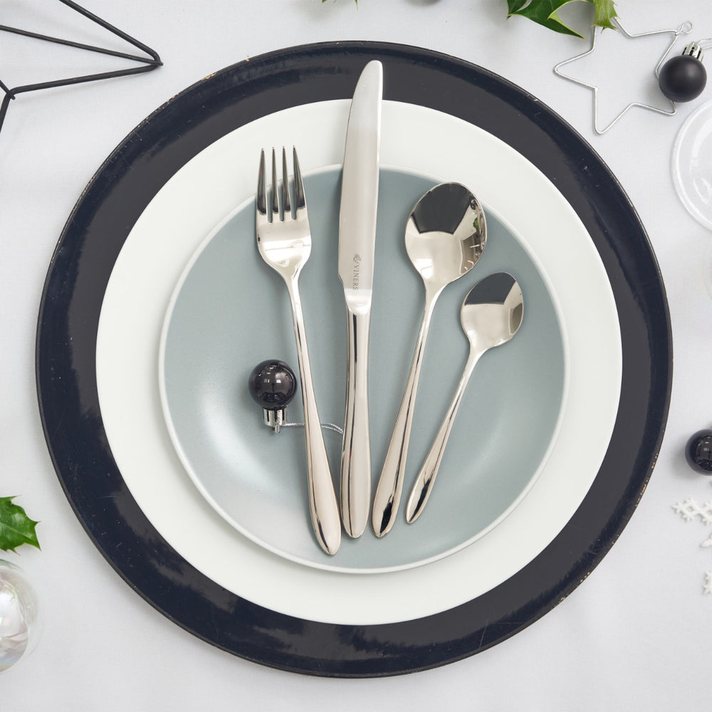 Add that dazzling finishing touch to any table setting with the Eden collection. This set is perfect for everyday use and when entertaining guests. Made from the finest 18/10 quality steel, the set has classic lines with dainty teardrop shape handles and a sophisticated polished mirror finish.
