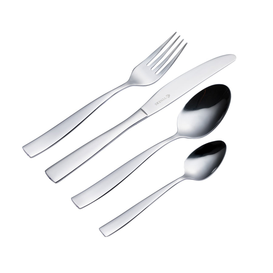 Add that dazzling finishing touch to any table setting with the Purity collection from Viners! This set is perfect for everyday use and when entertaining guests. Made from the finest 18/0 quality steel, the 16-piece set has smooth, flared handles and a mirror polish finish.